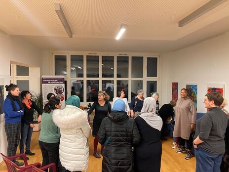 Beim Forumtheater am 1. Dezember wurde in einfachen Szenen gespielt, welche Herausforderungen bei häuslicher Gewalt es in der Nachbarschaft geben kann und wie man als Nachbarin andere Frauen unterstützen kann. Nachdem die Szenen zuerst von wohnpartner-Mitarbeiterinnen gespielt wurden, spielten die Teilnehmerinnen ihre Interventionsvorschläge auf der „Bühne“ selber vor. Durch die Methode Forumtheater wurde es möglich sich mit dem sensiblen Thema „häuslicher Gewalt“ auseinander zu setzen und sich darüber auszutauschen. Nach dem Theater haben die Teilnehmerinnen den Abend bei einem kleinen Buffet ausklingen lassen.