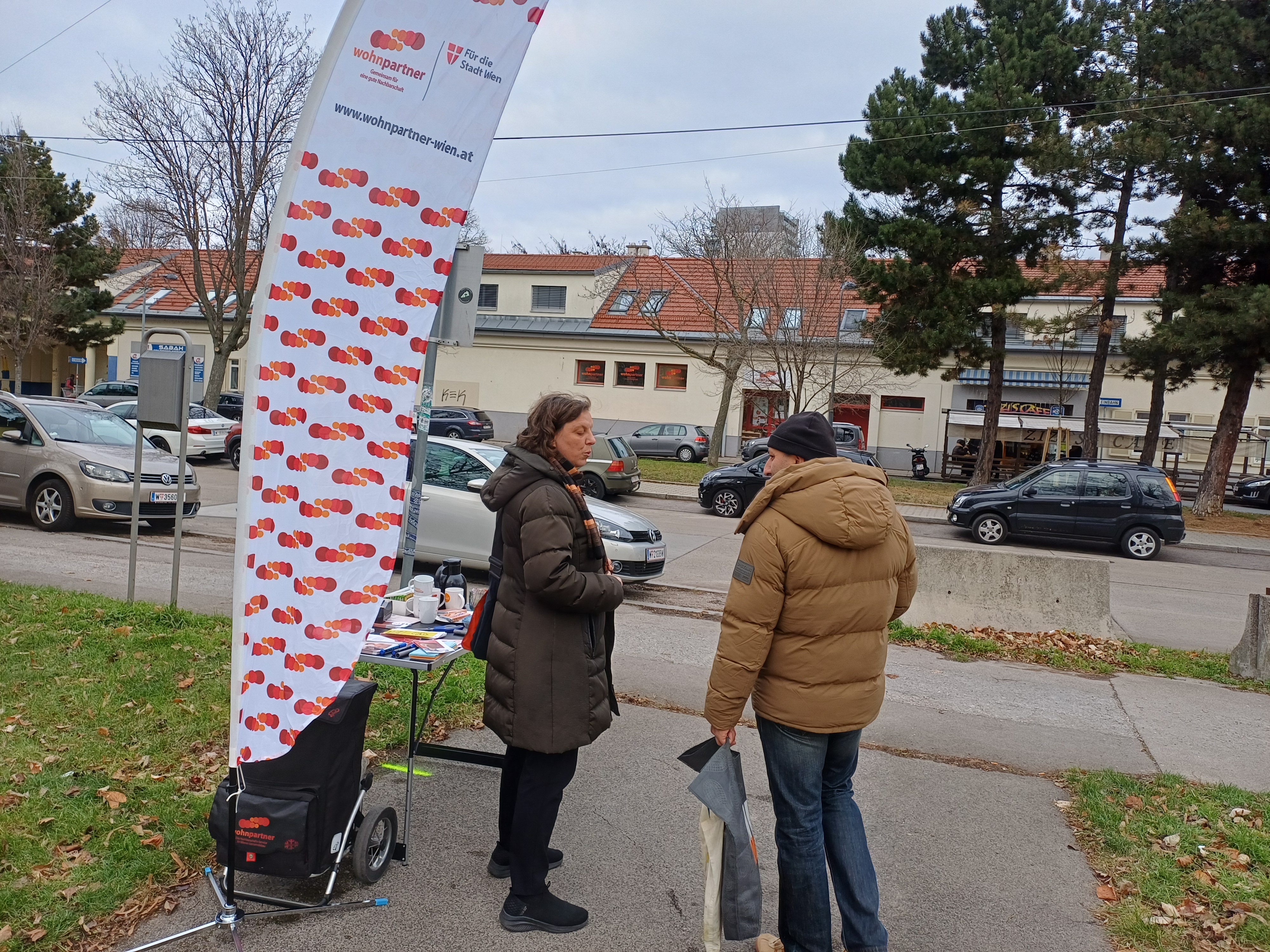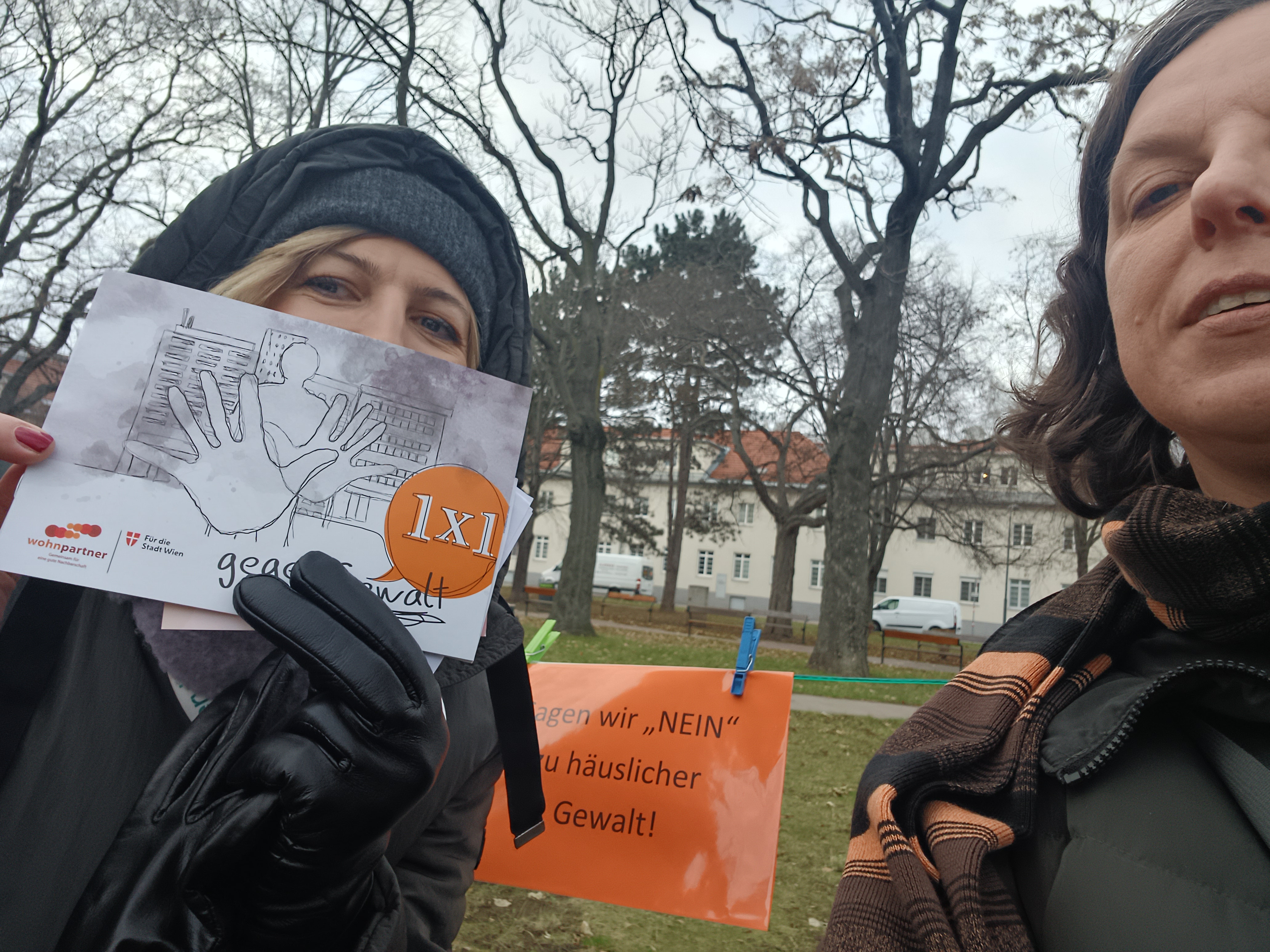 wohnpartner unterstützt die weltweite Kampagne „16 Tage gegen Gewalt an Frauen und Mädchen“. Am 27. November 2025 zeigten Gespräche mit Bewohner*innen und Passant*innen am Albin-Hirsch-Platz in Simmering, dass es eine breite Ablehnung gegen Gewalt an Frauen und Mädchen gibt. Berichtet wurden Vorfälle, bei denen Zivilcourage geleistet wurde, aber auch Forderungen nach Maßnahmen zum Schutz der Opfer und Empowerment für Mädchen und junge Frauen wurden formuliert und im öffentlichen Raum sichtbar gemacht.