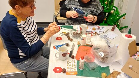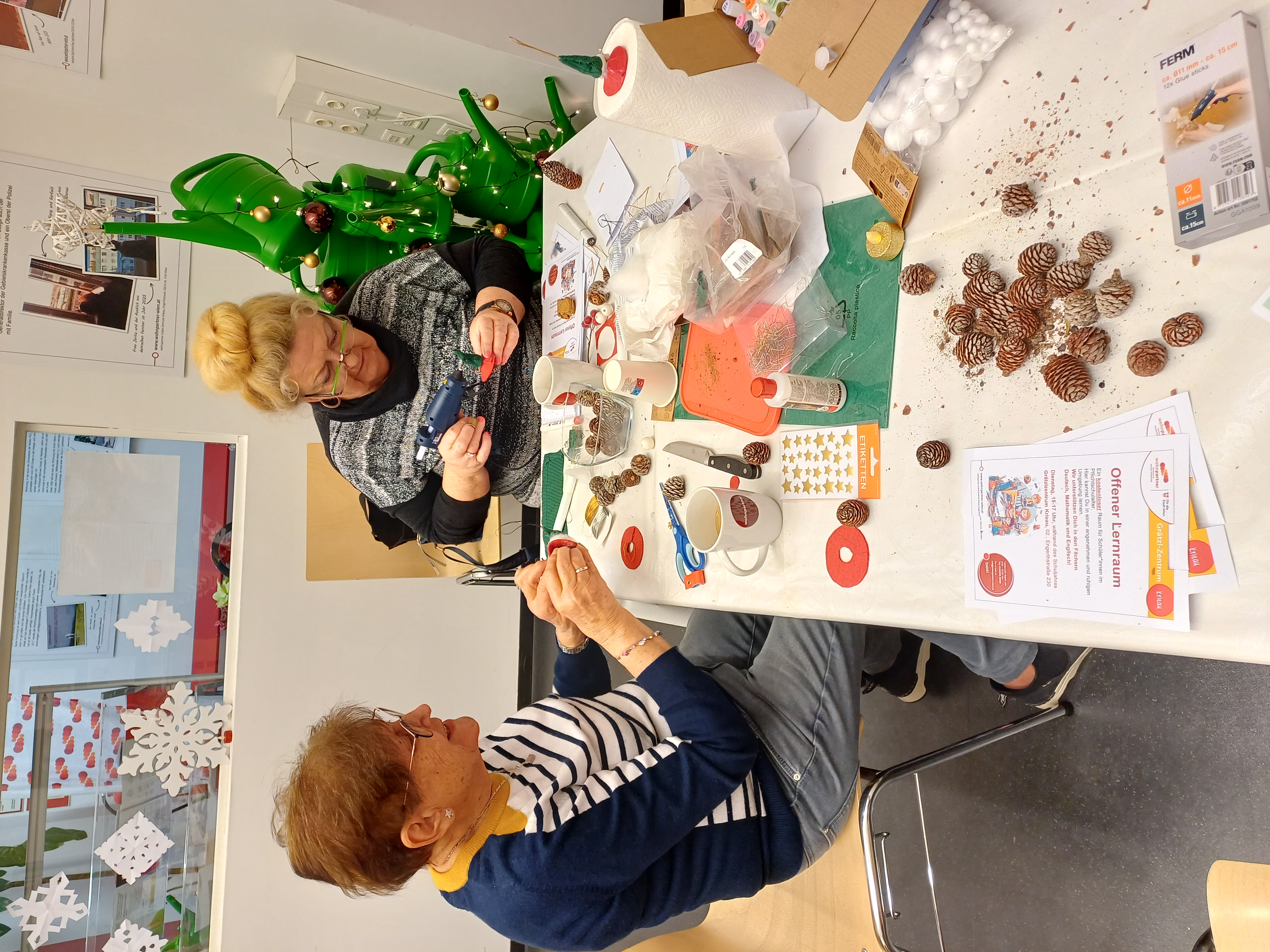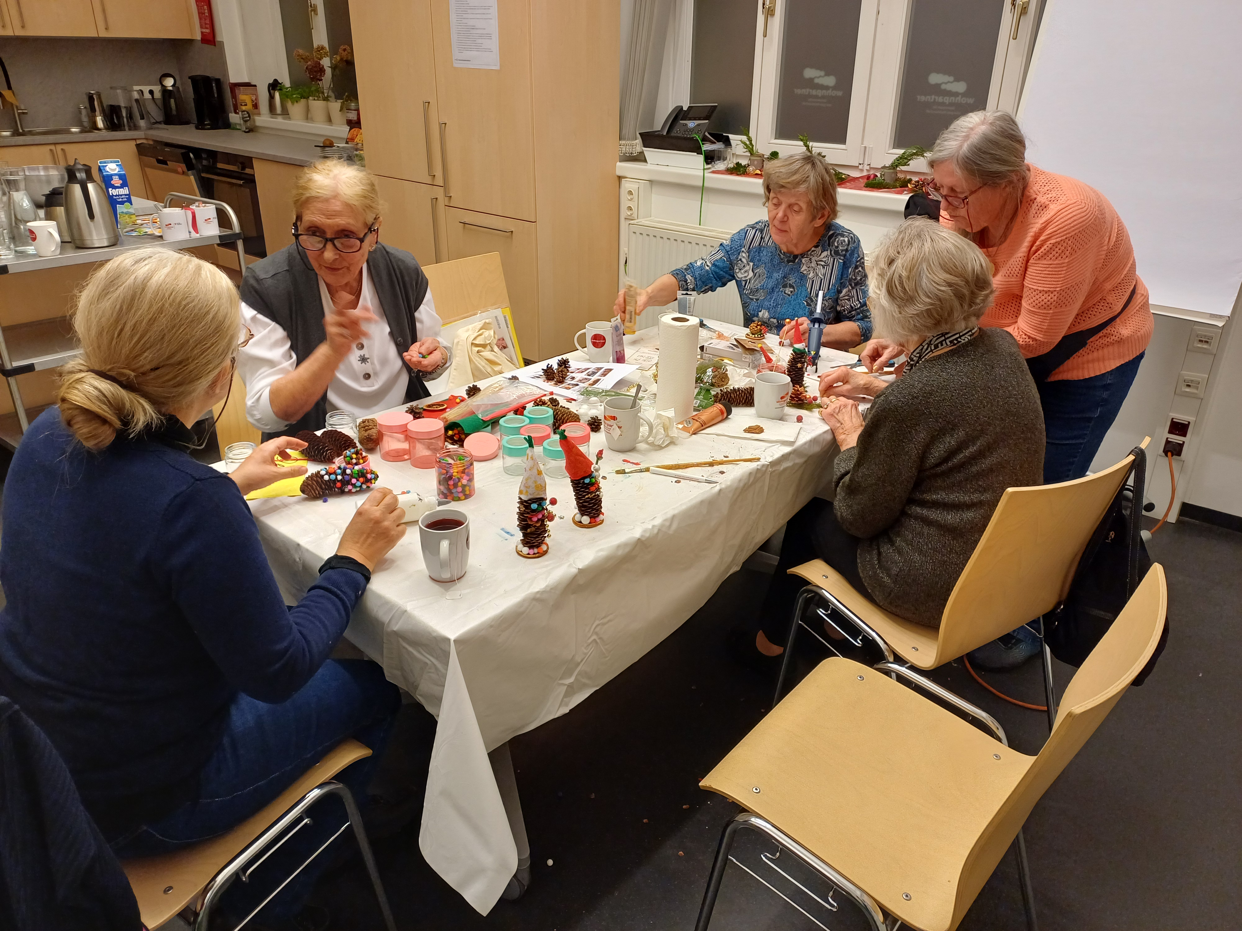 Am 17. Dezember 2025 lud das Grätzl-Zentrum Krieau zum Adventbasteln ein. Aktive Bewohner*innen leiteten die Bastelrunde, bei der drei Stationen aufgebaut waren. Interessierte konnten wählen zwischen Weihnachtsdekoration, Servietten-Technik und Männchen aus Bockerl. Das Resultat: Tolle Stimmung, tolle Ergebnisse und eine gelungene Jahresabschluss-Veranstaltung.