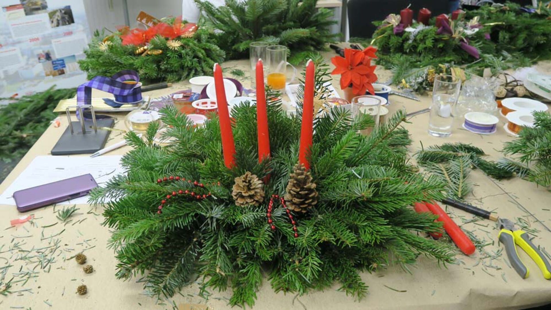Gemeinsam mit den Teilnehmer* innen werden Adventkränze gebunden und Winterschmuck gestaltet. Um Voranmeldung wird gebeten.