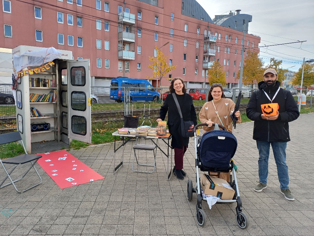 Die BücherKabine am Leberberg feierte am 31. Oktober Halloween. Kinder, Jugendliche, Nutzer*innen und Passant*innen haben zu diesem Anlass Dark Stories gelöst, in spannenden Büchern geschmökert und es gab Süßigkeiten ohne Ende.