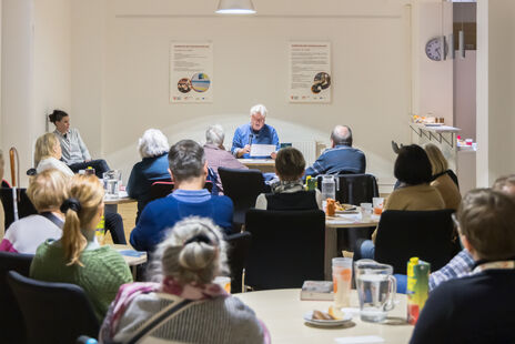 Im Rahmen der Veranstaltung fand eine Lesung durch Bewohner*innen des Grätzls statt. Liebgewonnene Passagen aus unterschiedlichen Werken wurden vorgelesen, ein Bewohner trug den Anfang einer von ihm verfassten Kurzgeschichte vor. Das Publikum lauschte aufmerksam bei Kaffee und Kuchen.