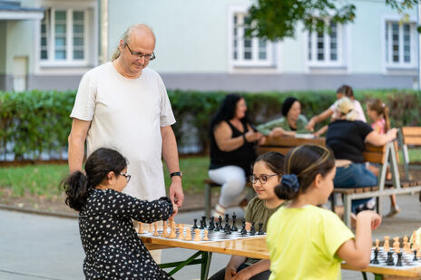 Pop Up-Café "Café Wien" mit Digitalisierungsangebot der VHS sowie nachbarschaftlicher Schachpartie im Winarskyhof