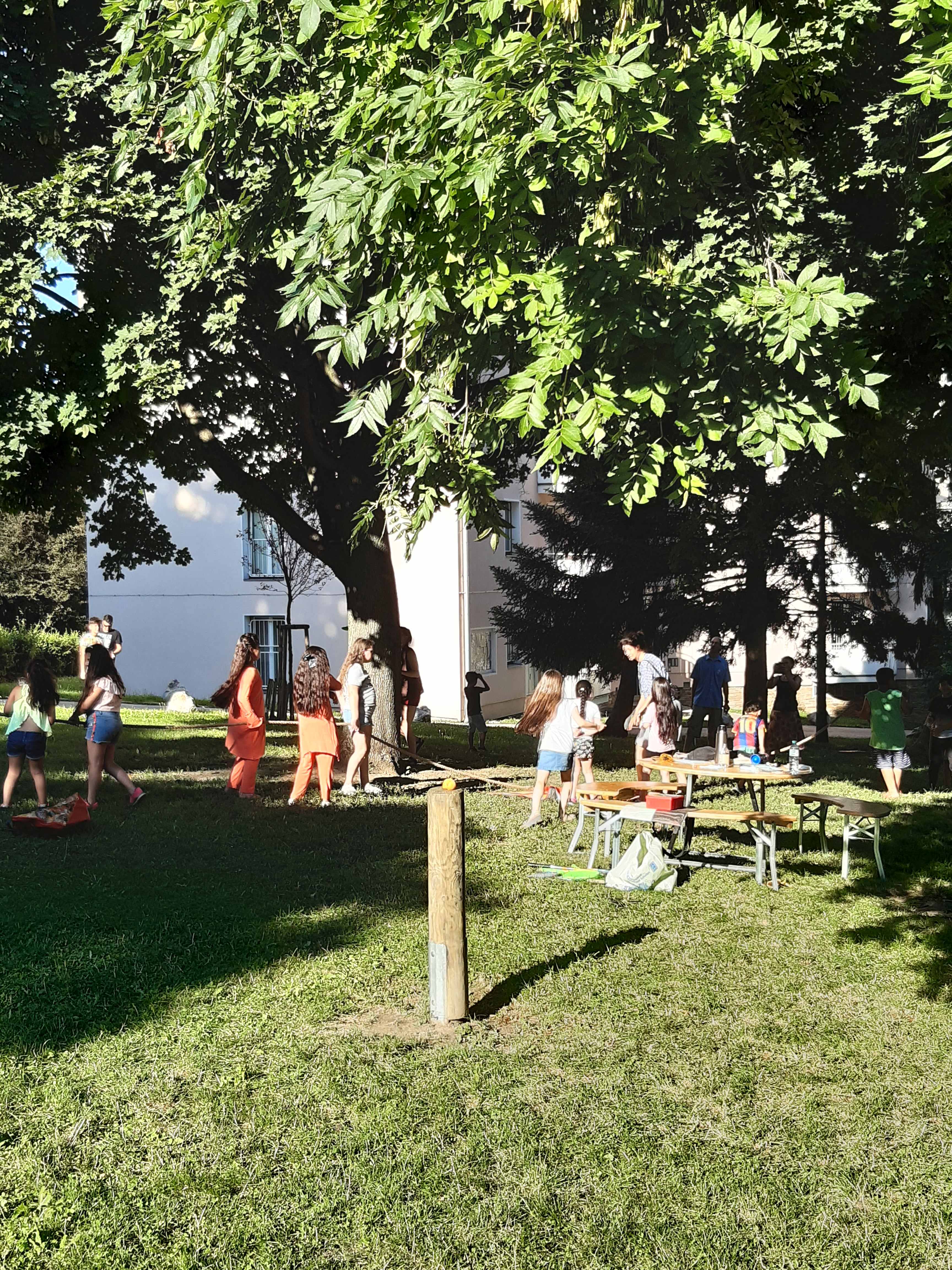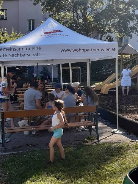 Am Sommerfest treffen sich junge und ältere BewohnerInnen der Andergasse 12 zum gemeinsamen Austausch im Innenhof. Wie jedes Jahr hat wp das Fest gemeinsam mit dem MB und dem Verein Spielkultur organisiert und dieses Jahr zusätzlich auch den WAFF eingeladen um Beratungsangebote vor Ort anzubieten