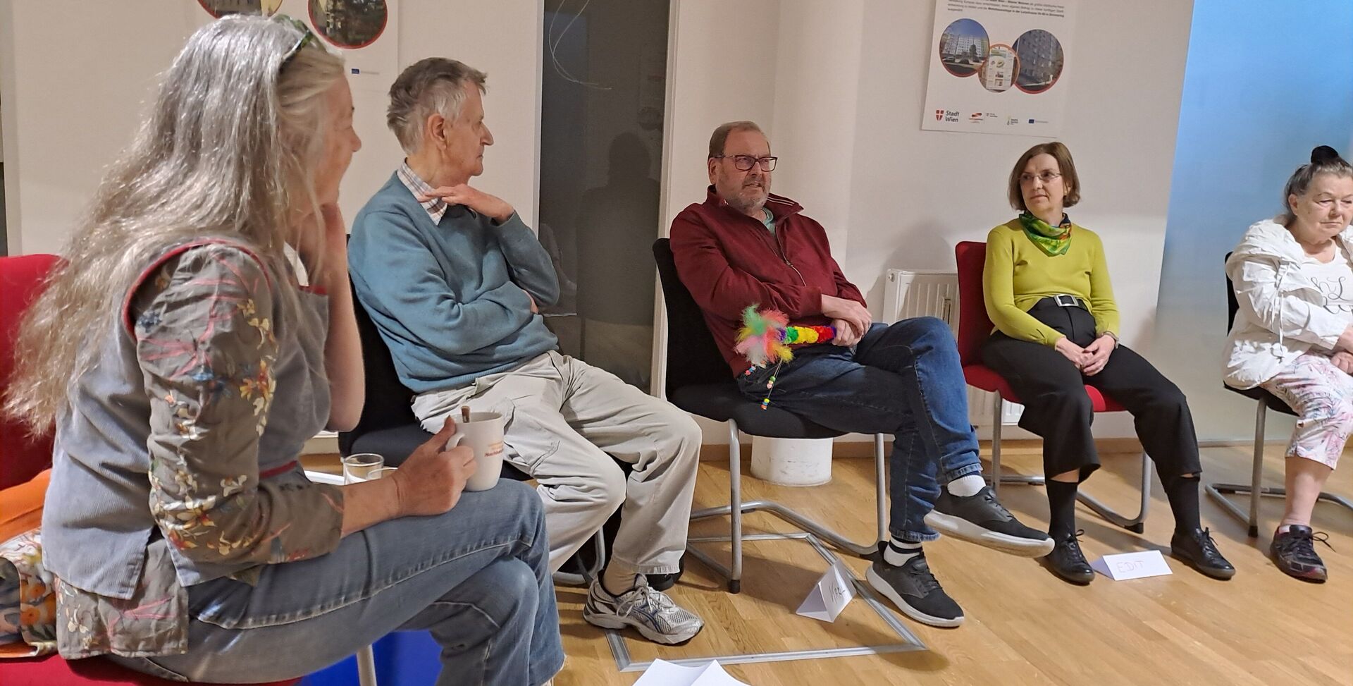 Am 15. Mai 2025 fand das zweite Erzählcafe im Simmeringer wohnpartner-Lokal statt. Ursprünglich war an diesem Tag ein Grätzlspaziergang durch die Hasenleitensiedlung geplant. Aufgrund der schlechten Wetterlage musste dieses Vorhaben abgesagt werden.