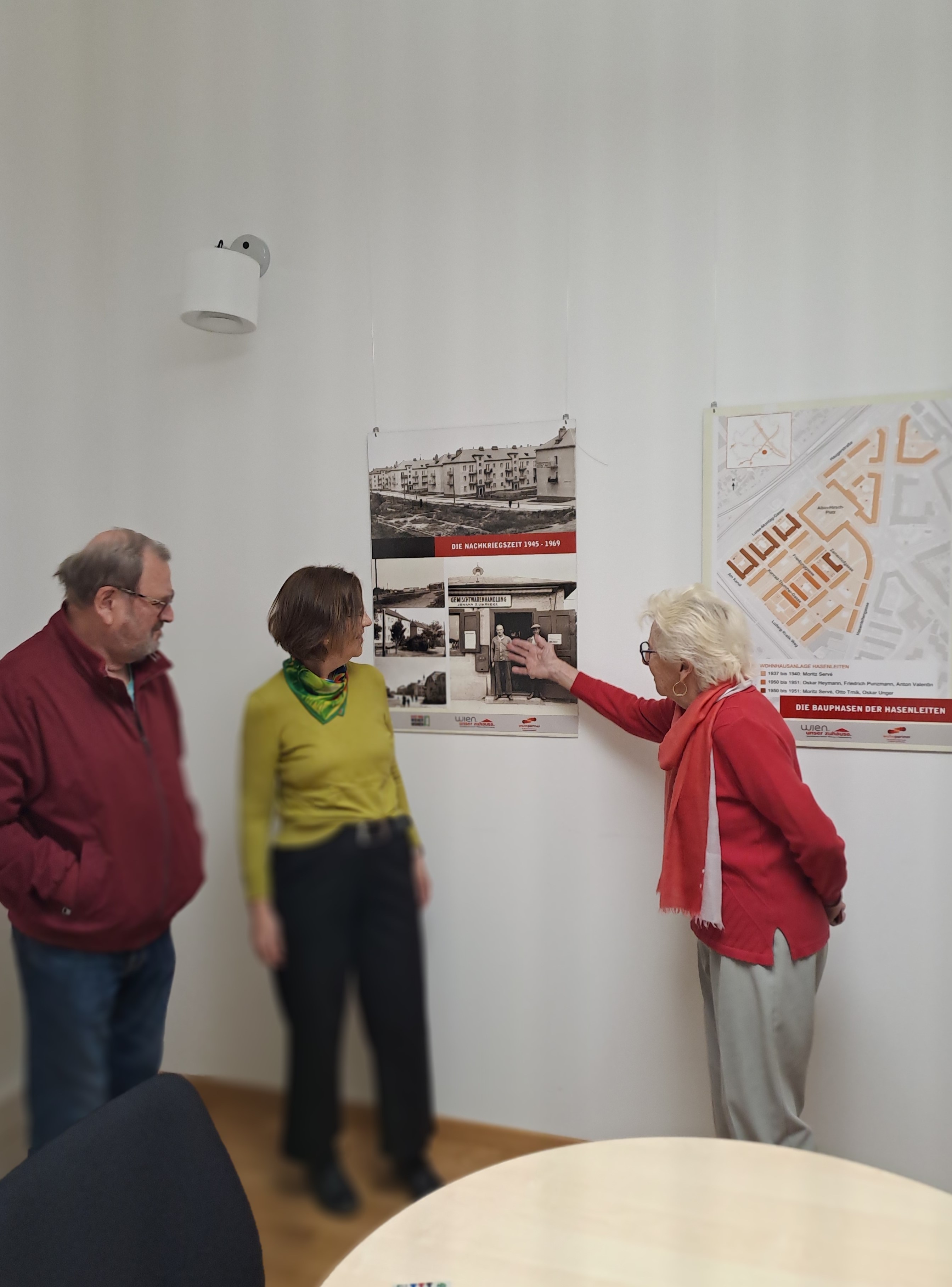 Beim Erzählcafé wurden Geschichten und Erlebnisse mit biographischem Bezug in die Runde geworfen, die eine lange Themenkette anstießen. So wurden Erzählungen über (Wohn-)Orte, Menschen, Natur, Alltagsroutinen und (sozial-)räumliche Gegebenheiten in die Plauderrunde eingebracht, bei gelassener Atmosphäre vertieft und um die Begehung eines Raumes mit dauerausgestellten Info- und Fototafeln zur Geschichte der Hasenleitensiedlung erweitert.
