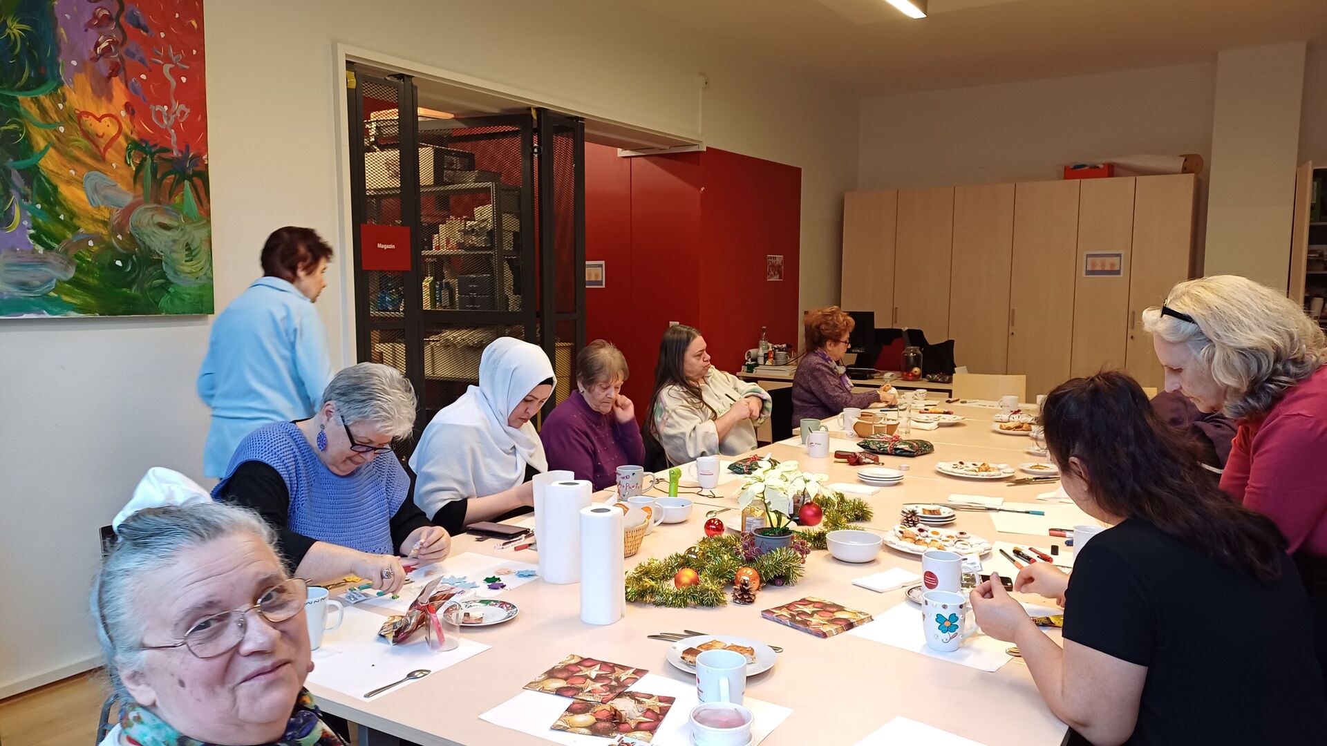 Am 9. Dezember fand das mittlerweile zur Tradition gewordene Treffen der Frauen aus den beiden Projekten Frauencafé und Frauenfrühstück im Grätzl-Zentrum Mitten im Dritten statt. Eine sehr diverse Gruppe von Frauen kam an diesem Tag zusammen und verbrachte einen schönen Vormittag mit Basteln und guten Gesprächen. Einige Teilnehmerinnen waren zum ersten Mal dabei.