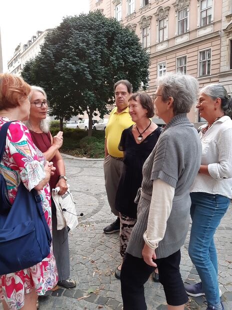 Über 50 Interessierte nahmen am 18. September 2023 an dem von wohnpartner organisierten Wiener Frauen*Spaziergang von Petra Unger teil. Der vielfältige Spaziergang „Frauen*Spuren / Über den Gürtel gehen“ führte vom Wohnort bekannter Schauspielerinnen in Währing u.a. vorbei am jüdischen Friedhof bis zur Kinderübernahmestelle des Roten Wiens im Alsergrund. Petra Unger begeisterte mit ihrem Wissen über die Salondame Fanny Arnstein und die ersten Wiener Straßenbahnfahrer*innen, sie bot einen Überblick über Frauen*rechte und ging – nicht zuletzt – auch auf die dunklen Seiten der österreichischen Geschichte ein.