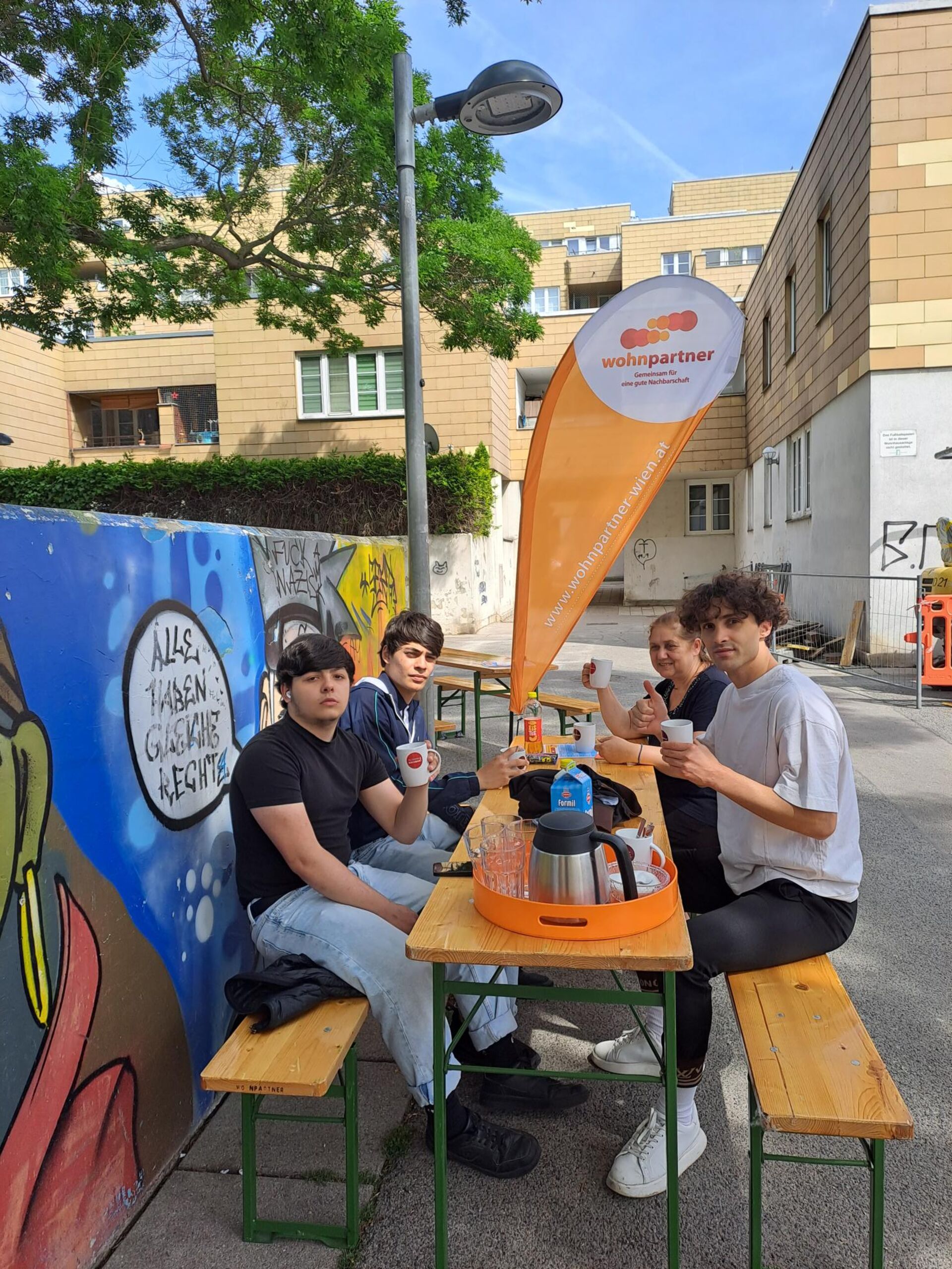 Am 23. Mai 2024 fand bei schönem Wetter das wöchentliche Grätzl-Café statt. Die Bewohner*innen plauderten über unterschiedlichen Themen und genossen Kaffee mit Strudel. Unser Motto: Gemeinsam statt einsam durch die gute Nachbarschaft. Alle sind herzlich dazu eingeladen!