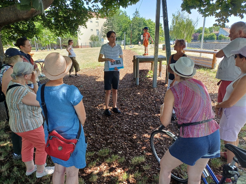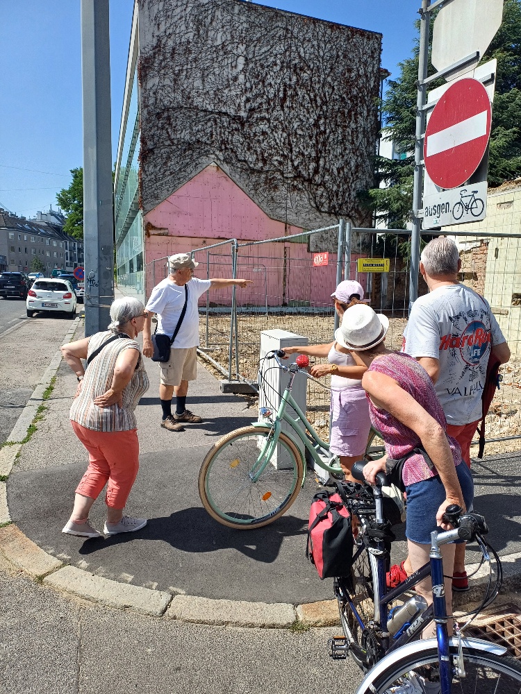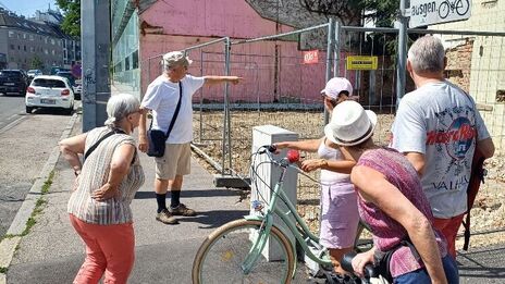 Auch wenn viele geschichtsträchtige Gebäude nicht mehr existieren, besuchte die Gruppe die „Original-Schauplätze“ von einigen spannenden Geschichten in Atzgersdorf. Anhand von Fotos und Erzählungen bekam die Gruppe einen Einblick, wer wie wo in Atzgersdorf gelebt und gewirkt hat. Aktiv teilten die Teilnehmenden ihr reiches lokales Wissen miteinander und so entstanden die ein oder andere Diskussion, einige „Aha-Momente“ und ein neuer spezieller Bezug zum Grätzl und seinen Geheimnissen. Für eine humorvolle Stimmung sorgten unter anderem die bewegten Lebensgeschichten der Atzgersdorfer Persönlichkeiten sowie die ein oder andere lokale Skurrilität.