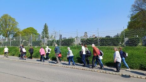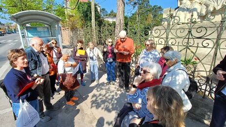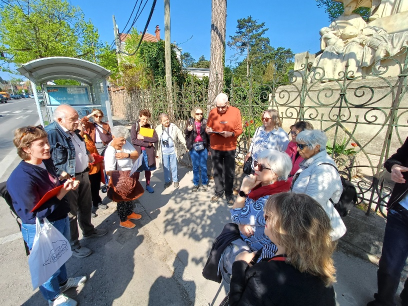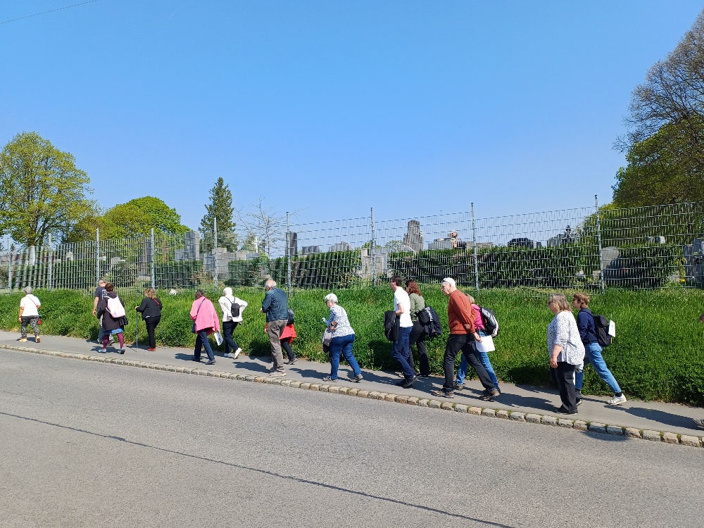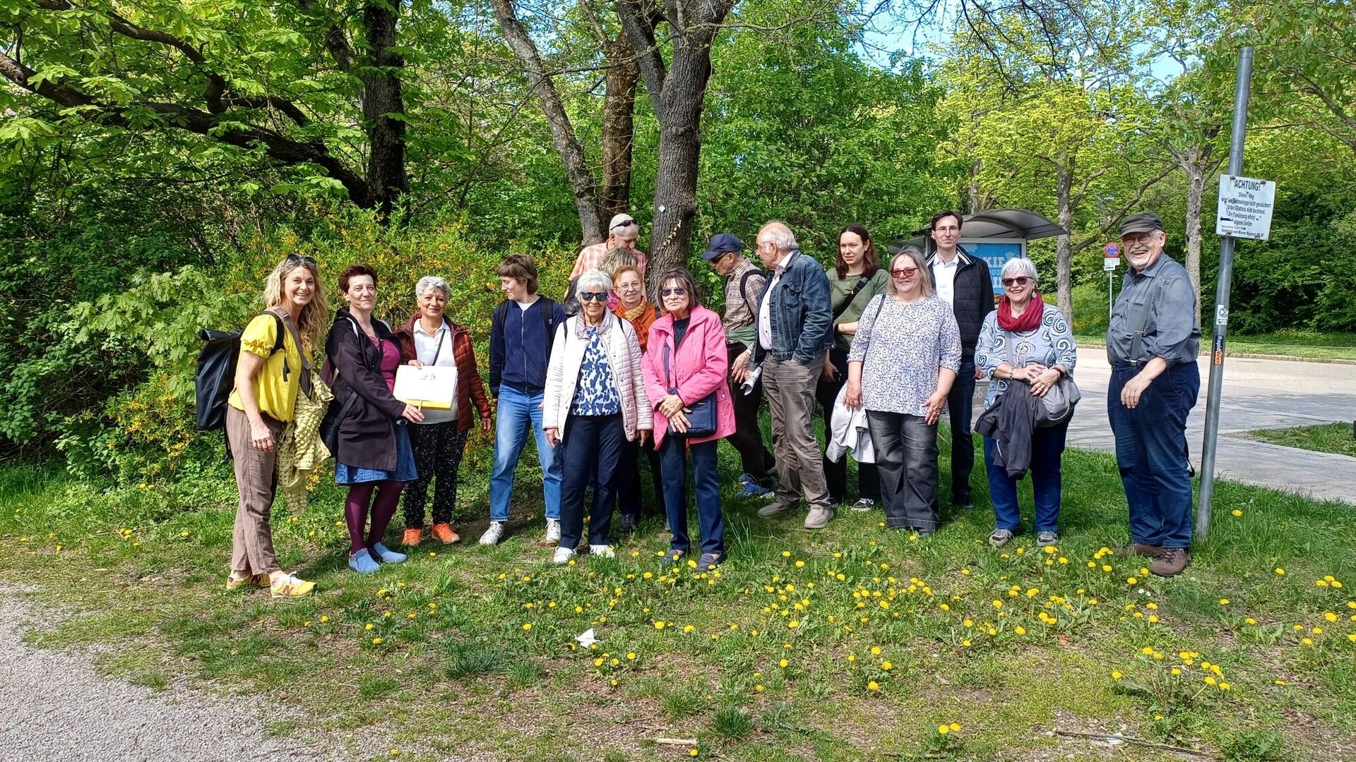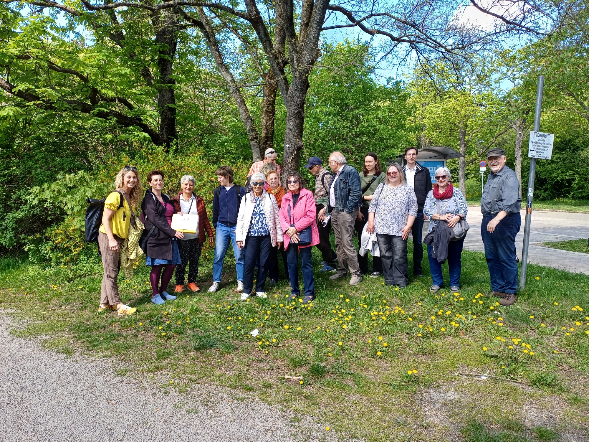 Am 17. April 2026 haben wir uns auf eine spannende wohnpartner Grätzl-Entdeckungstour begeben, die von unserer Teilnehmerin Susanna eigenständig geplant wurde. Gemeinsam mit drei Mitarbeitenden der Initiative „Los geht’s“ (www.losgehts.wien) und 15 weiteren Teilnehmer*innen erkundeten wir das Grätzl rund um den Flötzersteig. Wir spazierten durch idyllische Kleingartenanlagen, vorbei an einem Wasserreservoir, warfen einen Blick auf die Kufner Sternwarte, gingen entlang der Steinhofgründe und beendeten die abwechslungsreiche Tour am Flötzersteig. Das Wetter war traumhaft, die Bäume standen in voller Blüte und es gab jede Menge interessante Inputs und spannende Fragen der Teilnehmenden.