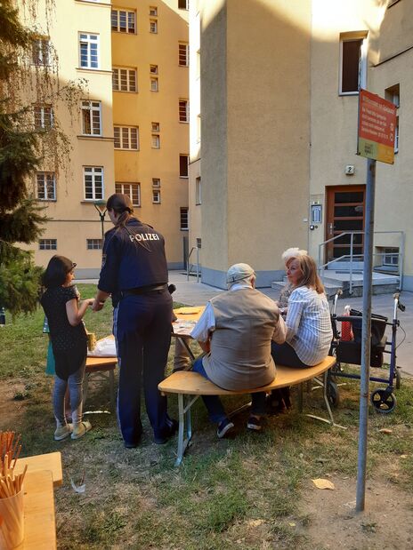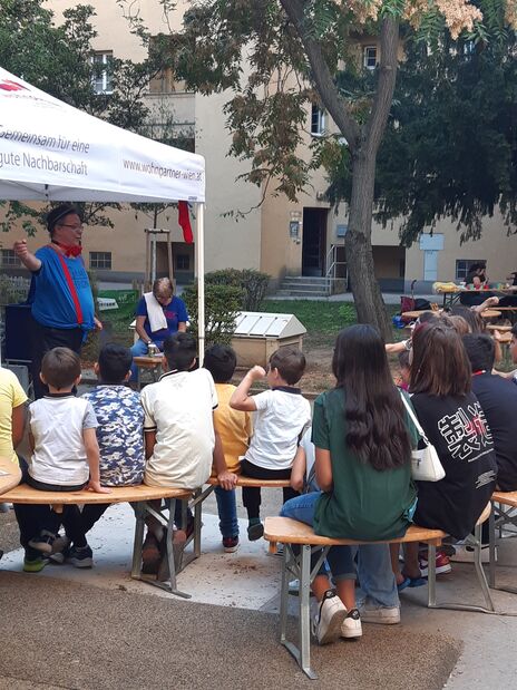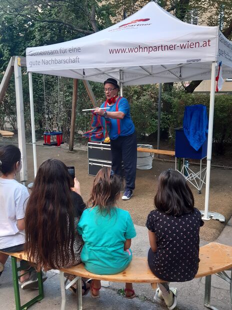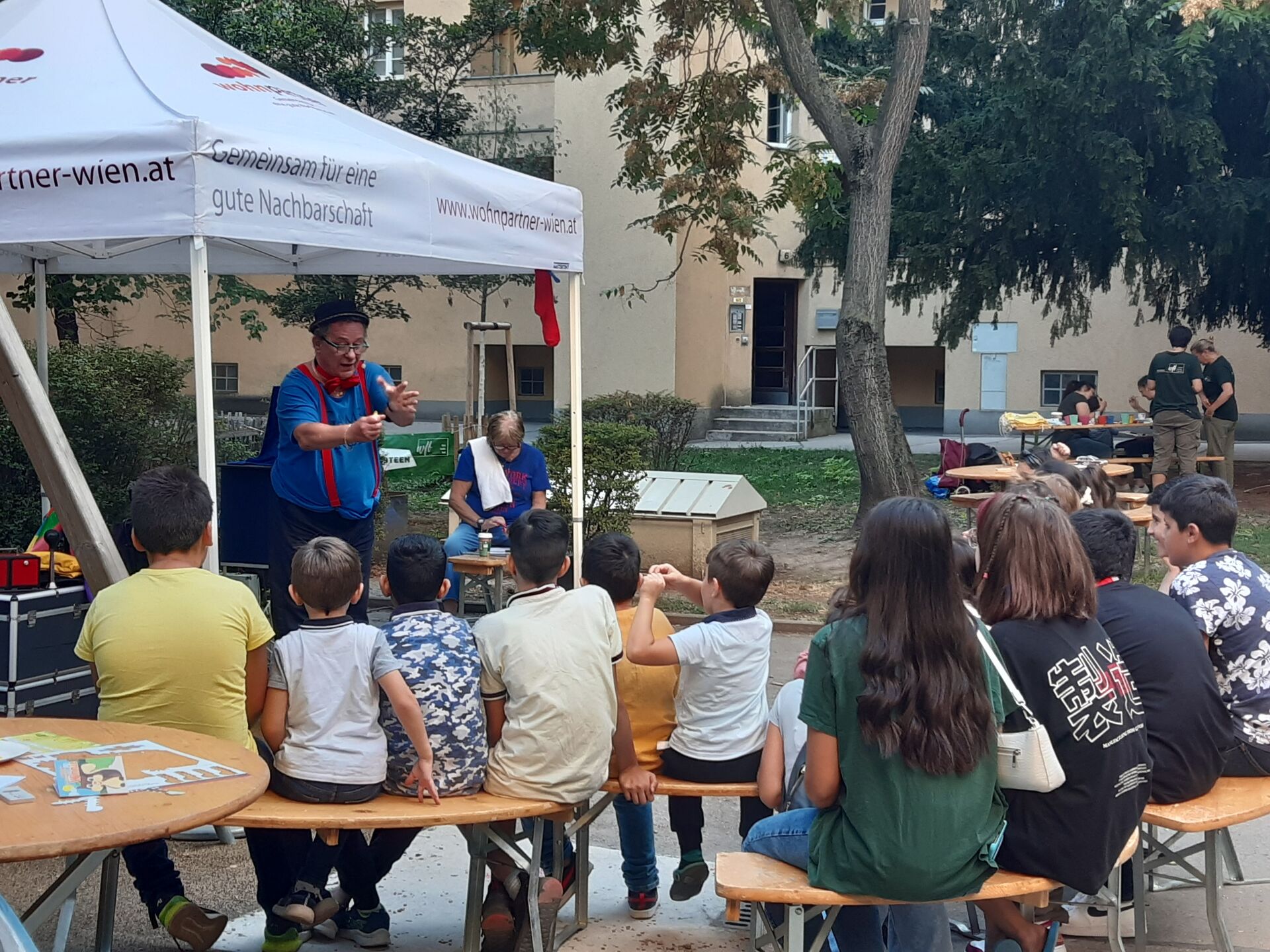 Fast schon traditionell fand auch dieses Jahr im September das Herbstfest im Ditteshof statt. Bei bestem Wetter wurde mit den Bewohner*innen, dem Mieterbeirat, der Bezirksvertretung und der Grätzl-Polizei geplaudert, gegessen und sich ausgetauscht. Sehr bereichernd war dabei die Kooperation mit dem Familienbund, der tolle Programmpunkte für Kinder anbot. Für die Kleinen Besucher*innen gab es unter anderem Kinderschminken sowie eine Zaubershow mit Pierre Mardue.