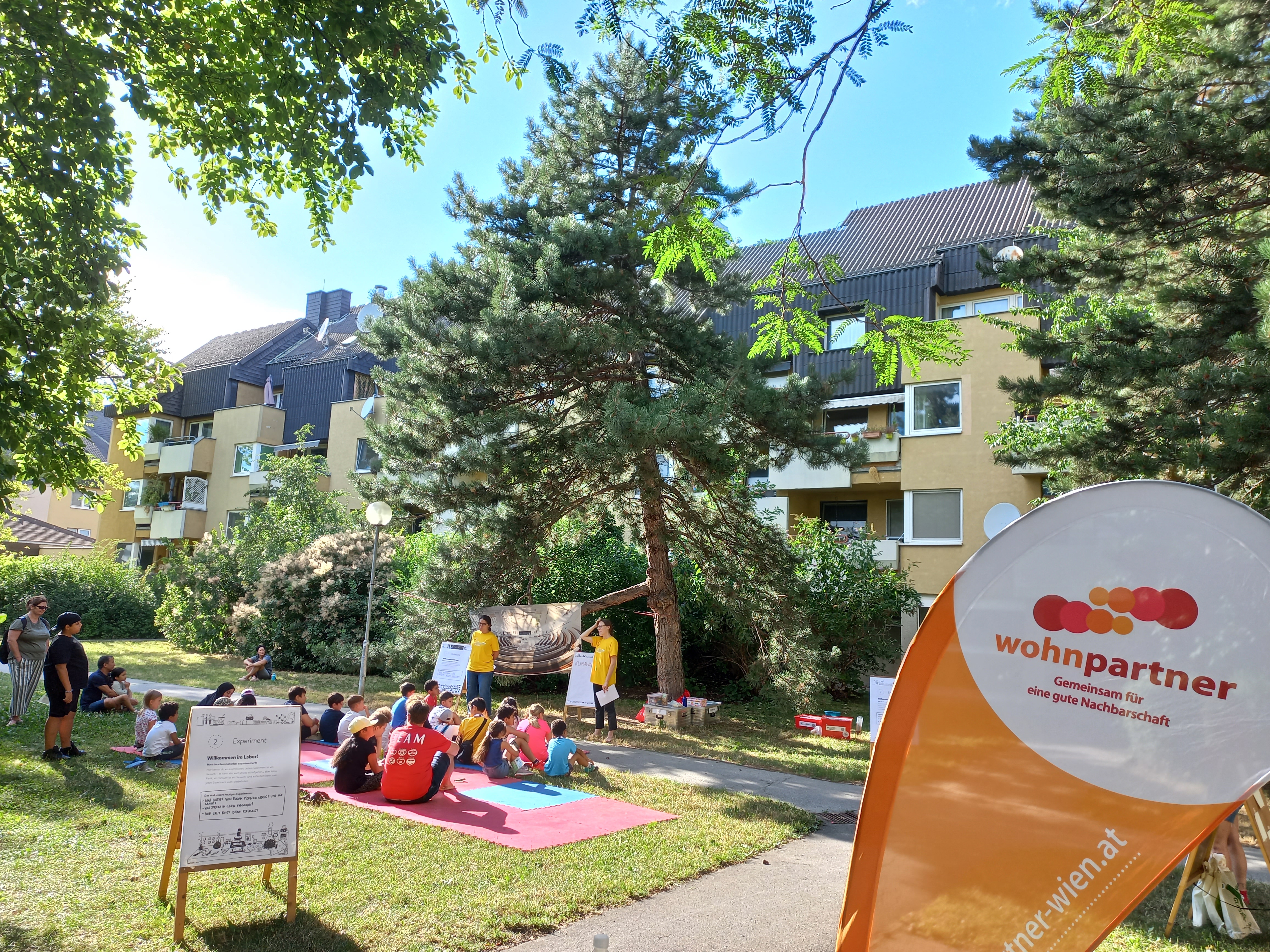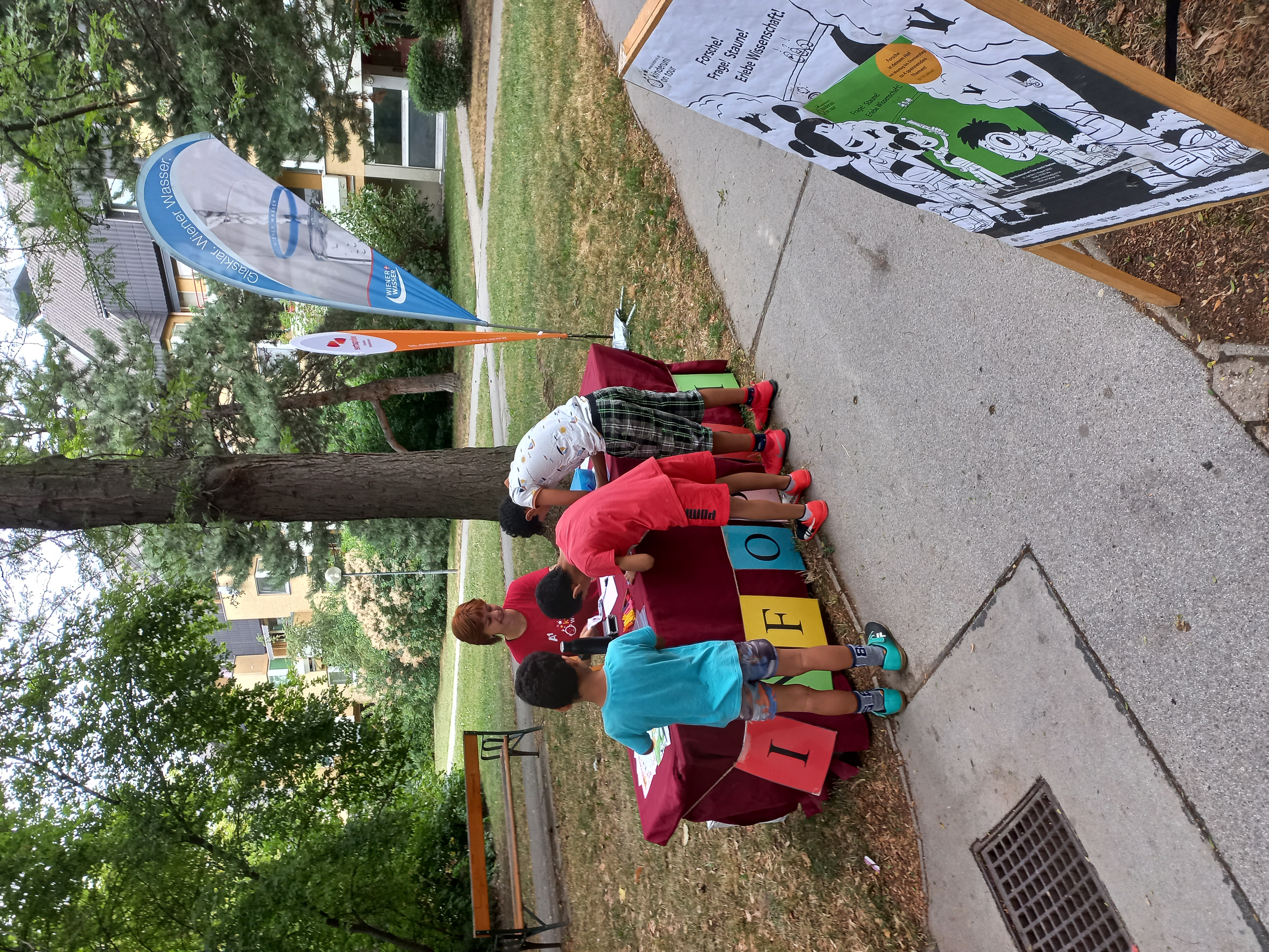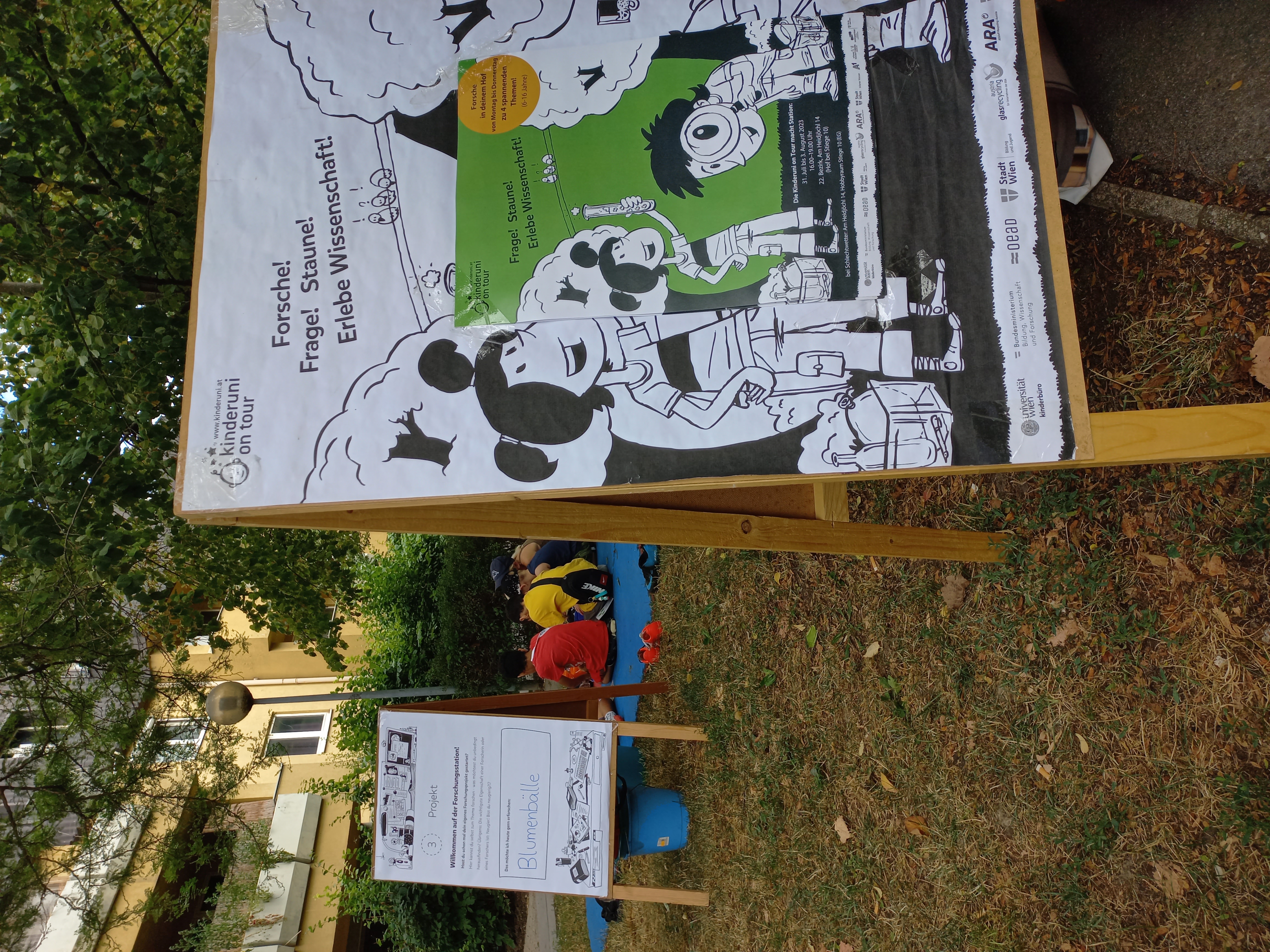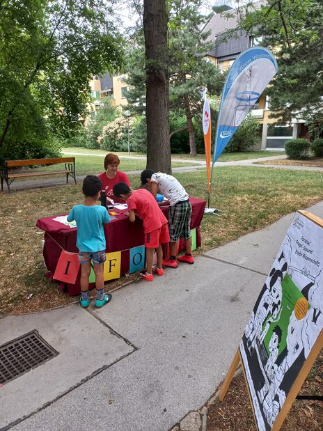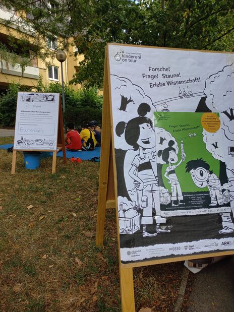 Die Kinderuni on Tour bringt im Sommer Wissenschaft und Forschung an öffentliche Plätze und war von 31. Juli bis 3. August 2023 zu Gast im Gemeindebau am Heidjöchl.