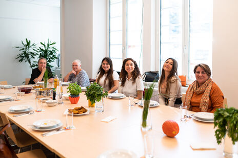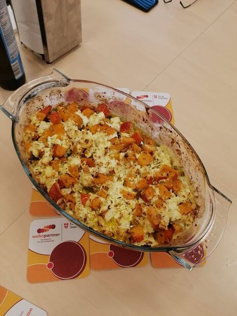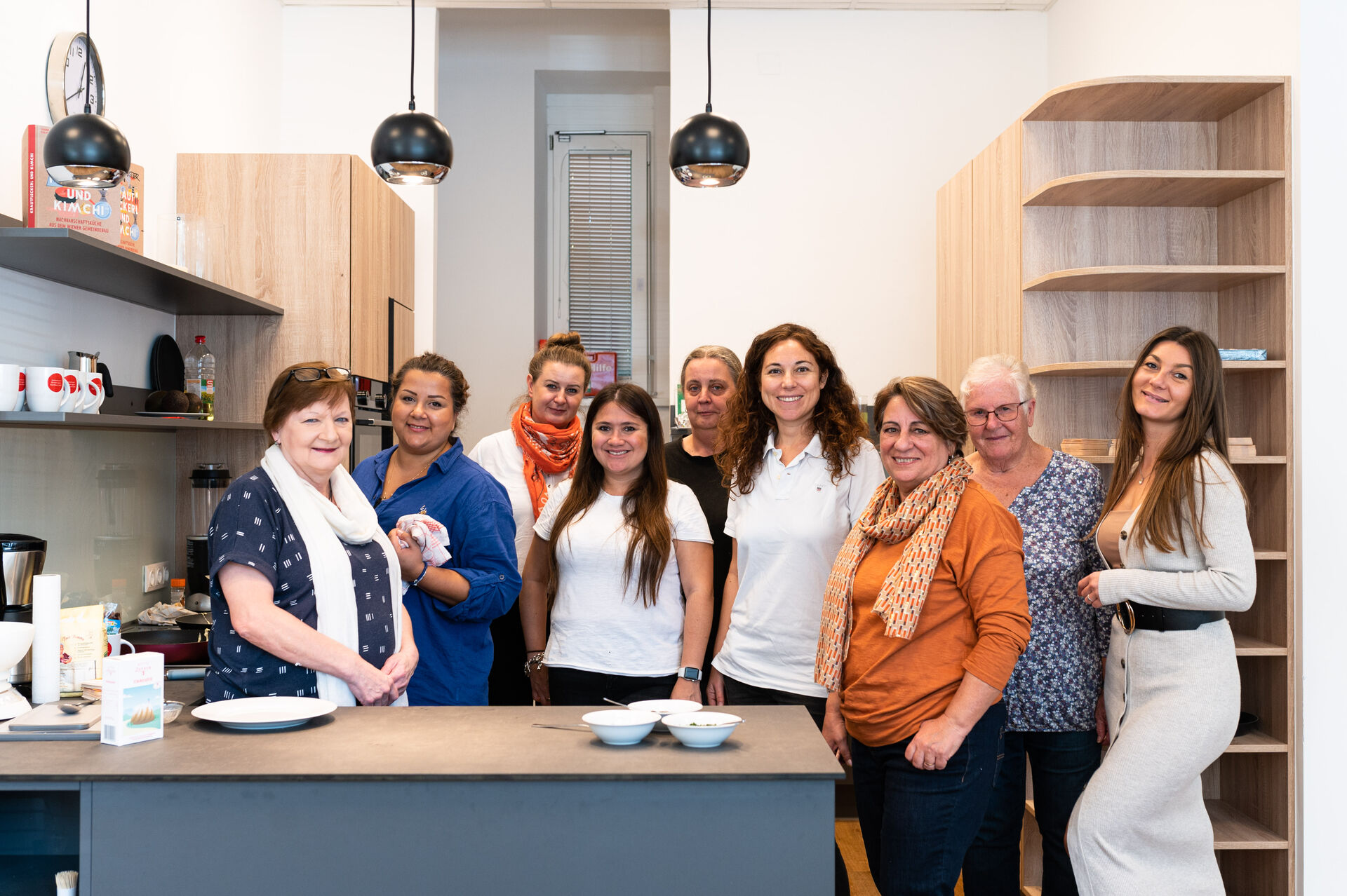 Im Grätzl-Zentrum Kaisermühlen findet einmal monatlich ein Koch-Treff statt. Das Menü wird im Vorhinein gemeinsam mit den Interessent*innen geplant, dabei gibt es die Möglichkeit, eigene Rezepte einzubringen. Bisher wurden unterschiedlichste Rezepte, von der österreichischen Kürbiscremesuppe bis zur syrischen Spezialität Fatteh, gemeinsam gekocht und in geselliger angenehmer Atmosphäre verspeist.
