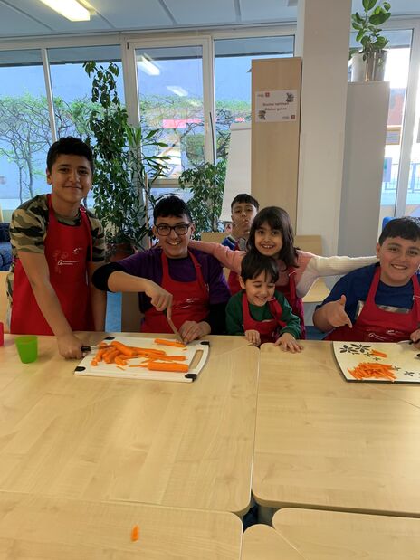 Die Kochgruppe im Grätzl-Zentrum Atzgersdorf durfte diese Woche einige persische Köstlichkeiten aus Afghanistan kennenlernen. Die Teilnehmenden kochten gemeinsam Hühnerfleisch mit Reis, Rindfleischbällchen und ein vegetarisches Gericht aus verschiedenen aromatischen Kräutern. Doch vor allem die Details machten die Besonderheit der Speisen aus: So wurde der Reis mit karamellisierten Karotten und Rosinen serviert, die fein geriebenen roten Zwiebel machten die Fleischbällchen mit Tomatensauce noch schmackhafter, der knusprige Reis vom Boden des Topfes war eine besondere Spezialität, genauso wie die verwendeten Gewürze und der Zimt auf dem Obst, das zur Nachspeise aufgeschnitten wurde.