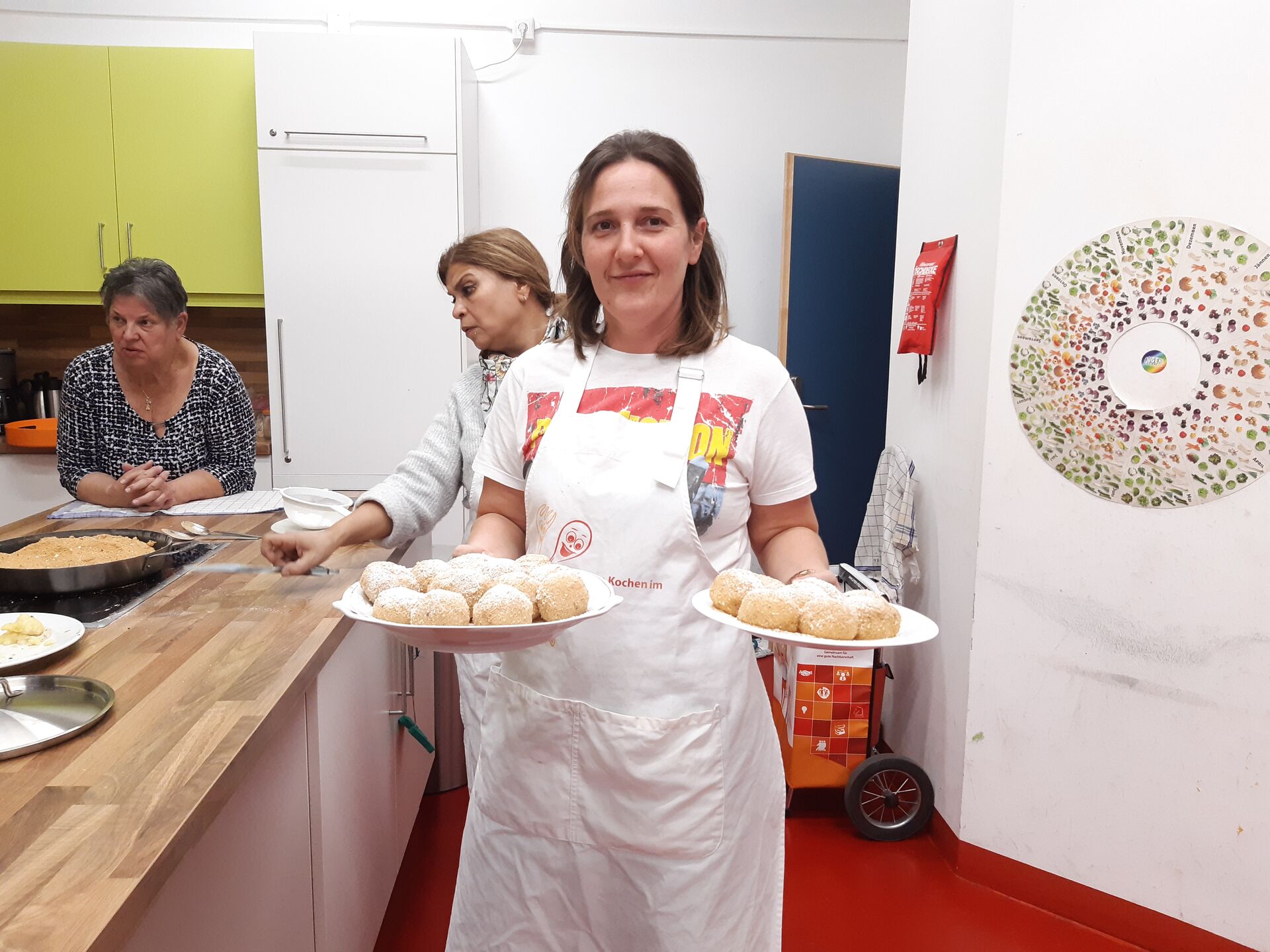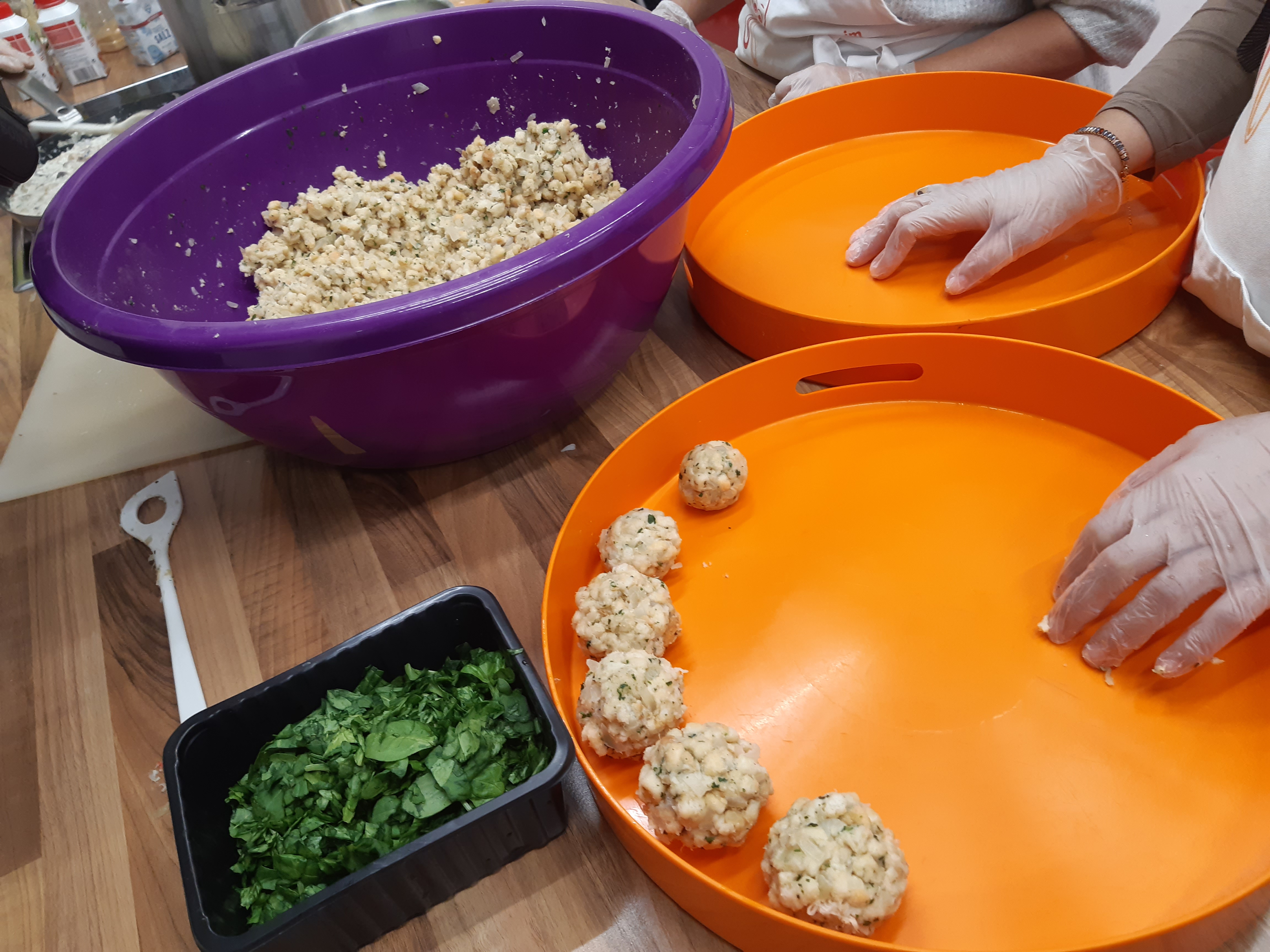 Im Rahmen der Woche der offenen Tür hat sich die Kochgruppe vom Grätzl-Zentrum Wienerberg getroffen, um einen Workshop zum Thema Knödel abzuhalten. Dabei wurden verschiedene Techniken und Rezepte ausprobiert, wie Semmelknödel, Spinatknödel, Kartoffelknödel mit und ohne Füllung sowie Gnocchi. Ziel war es, mit einfachen Grundnahrungsmitteln ein vielseitiges Angebot an Gerichten herzustellen.