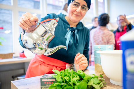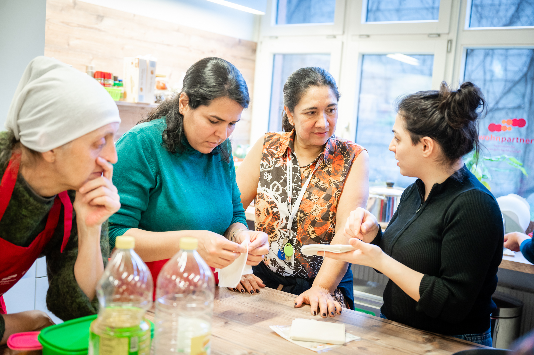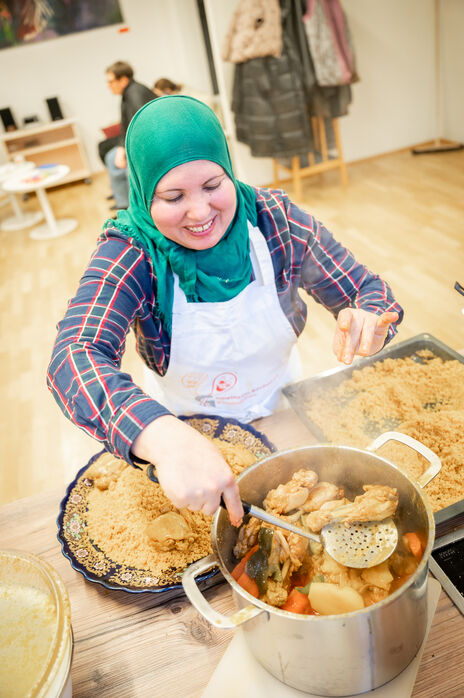 Bei diesem Kochtreff zeigte uns Frau Saliha, eine Bewohnerin aus dem Karl-Waldbrunner-Hof, wie man tunesischen Couscous und Briks, typische Gerichte ihres Landes, zubereitet und wie man diese Speisen traditionell serviert. Als Nachspeise wurde ein Tiramisu mit Erdbeeren und anderen Früchten gezaubert sowie traditioneller marokkanischer Tee kredenzt.