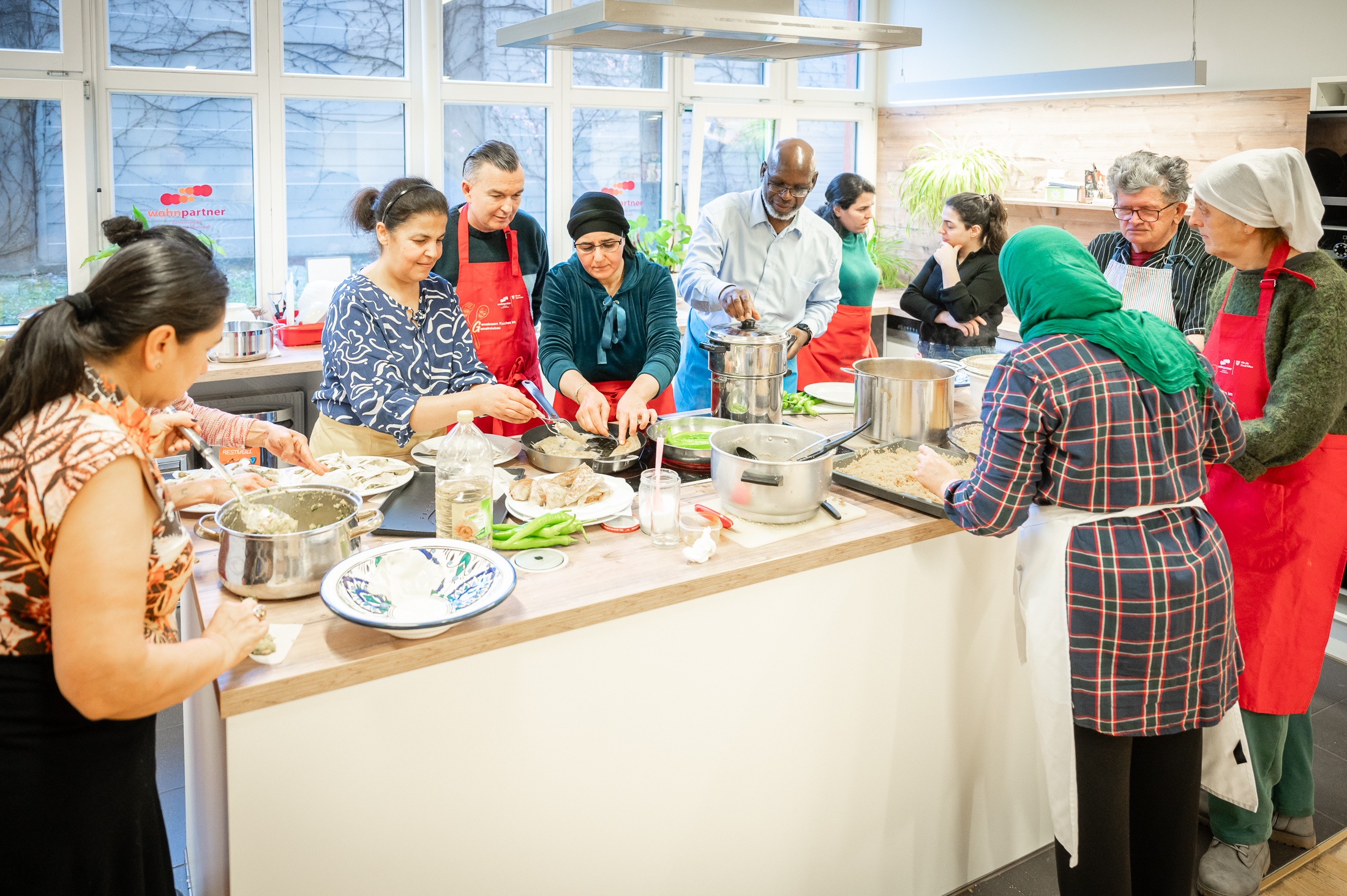 Unsere Kochgruppe ist gewachsen: 13 Erwachsene und drei Kinder nahmen an diesem Termin teil.