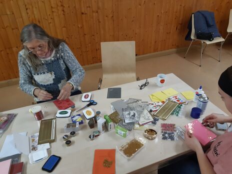 In entspannter Atmosphäre mit Winterzaubertee gestalteten die Bewohner*Innen Karten mit Drucktechnik, Washi Tapes und Glitter. Viel Spaß beim Schenken.