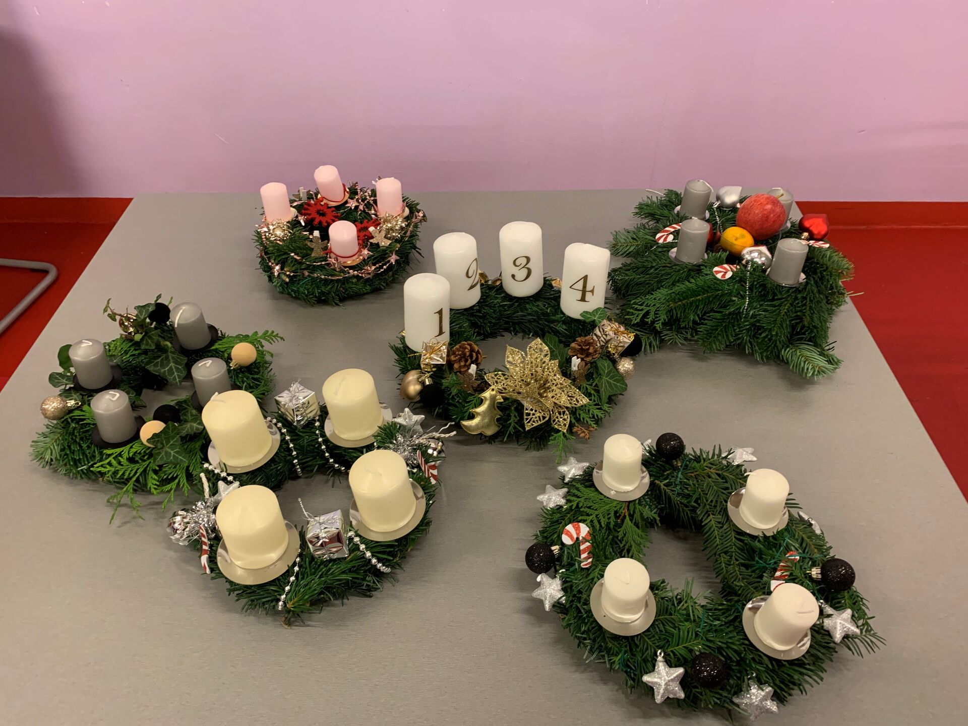 Im Rahmen des wöchentlichen Projektes Näh- und Kreativwerkstatt im Grätzl-Zentrum Wienerberg wurde Adventkranz binden und Winterschmuck gestalten an einem Nachmittagstermin angeboten. Ca. 20 Personen nahmen daran teil und gestalteten eine Reihe von schön geschmückten Adventkränzen.
