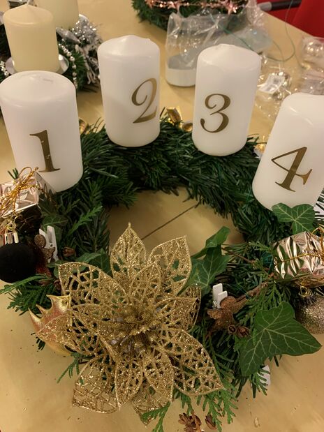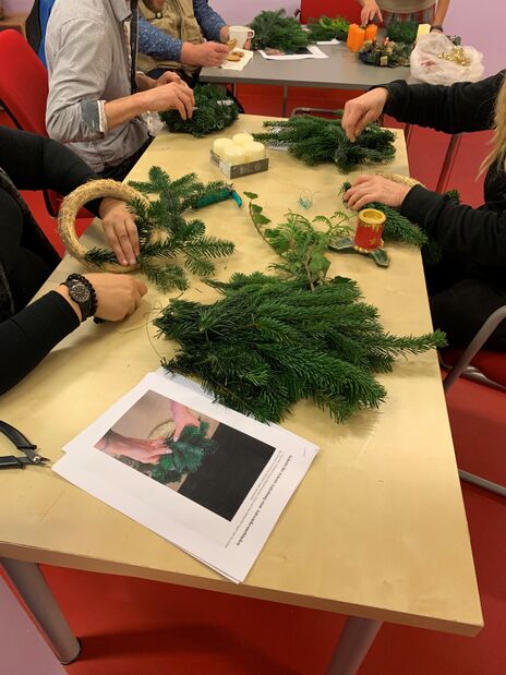 Der mitgebrachte Adventkranzschmuck wurde untereinander zum Basteln geteilt, ebenso wie die köstlichen Kekse die allen Besucher*innen hervorragend mundeten.