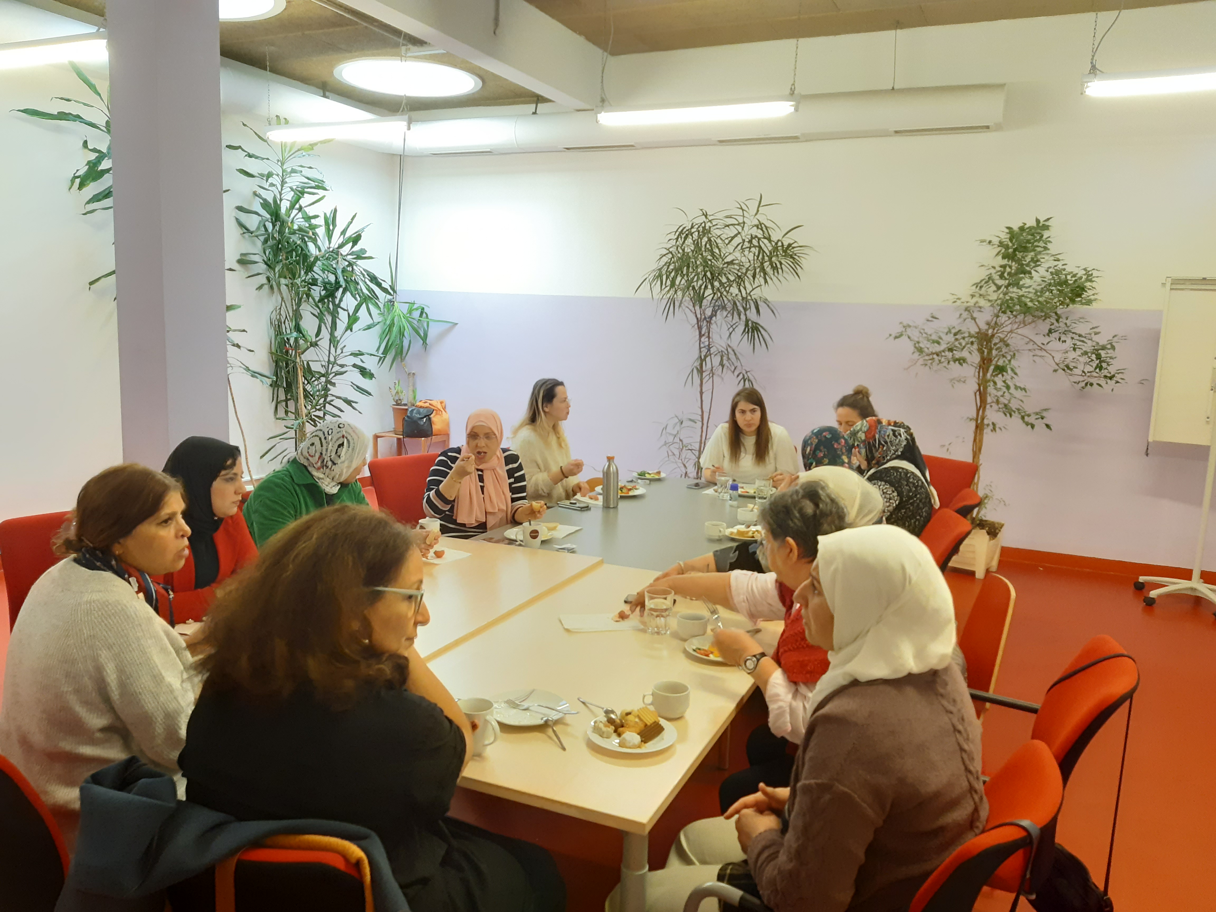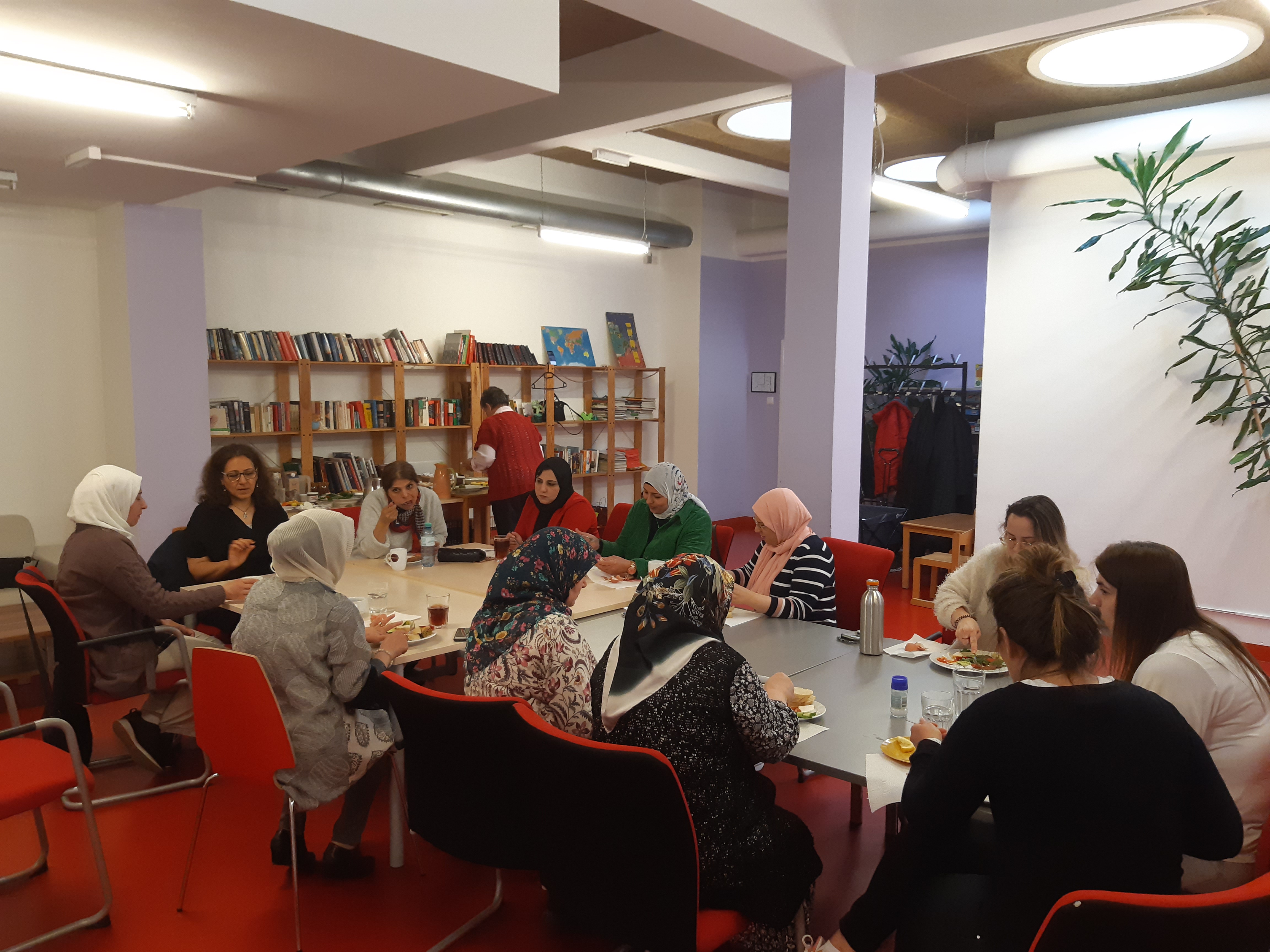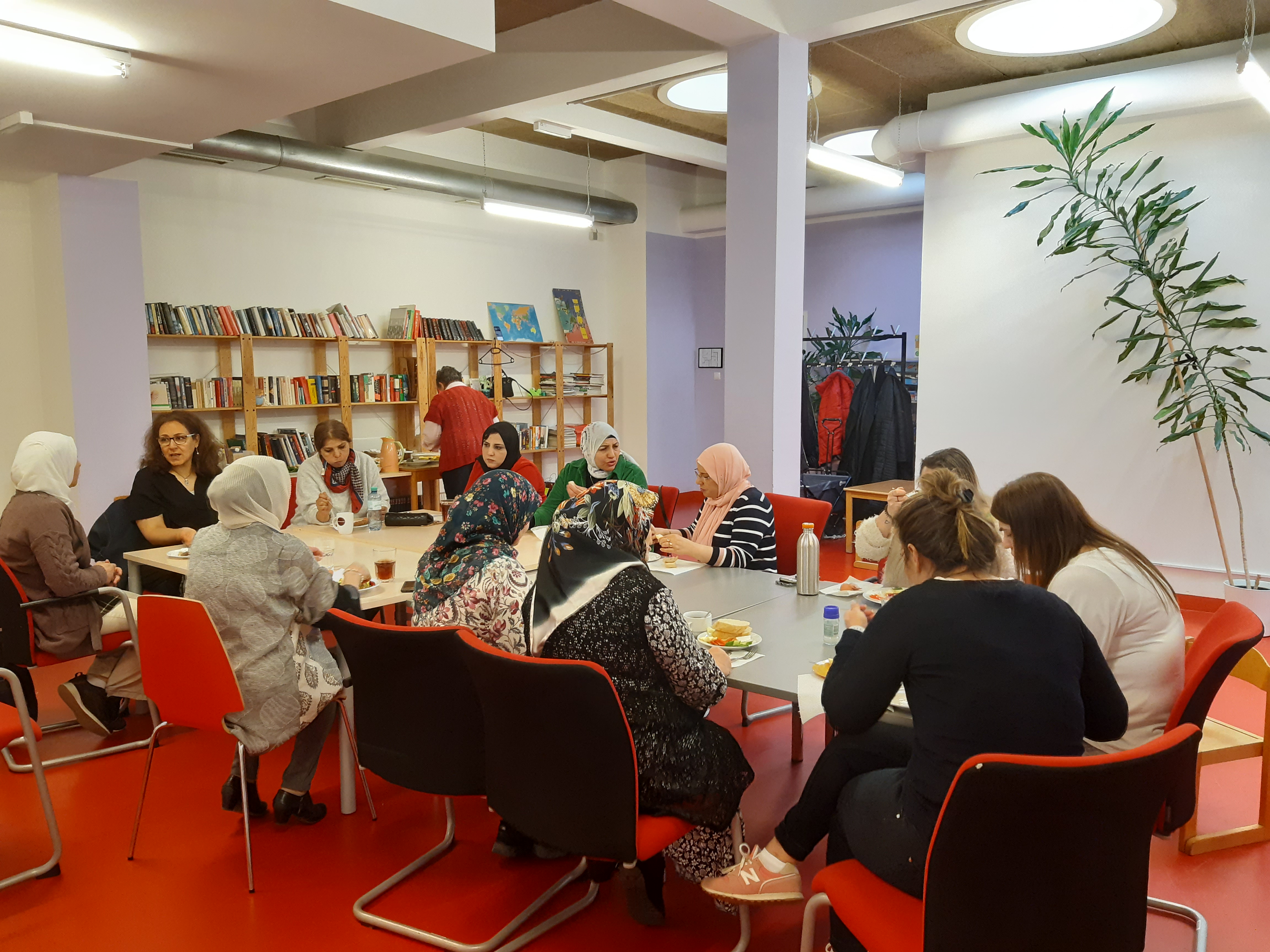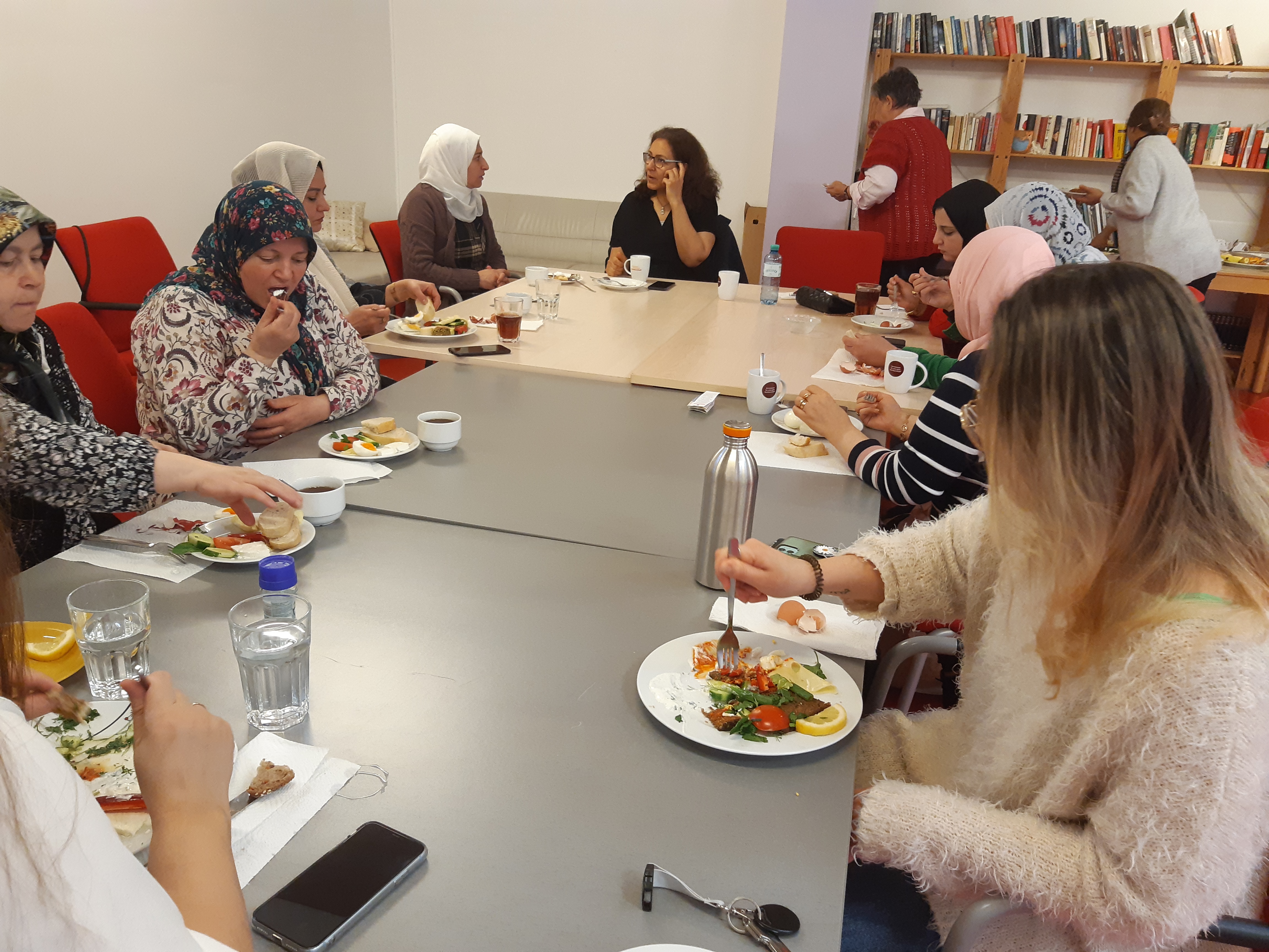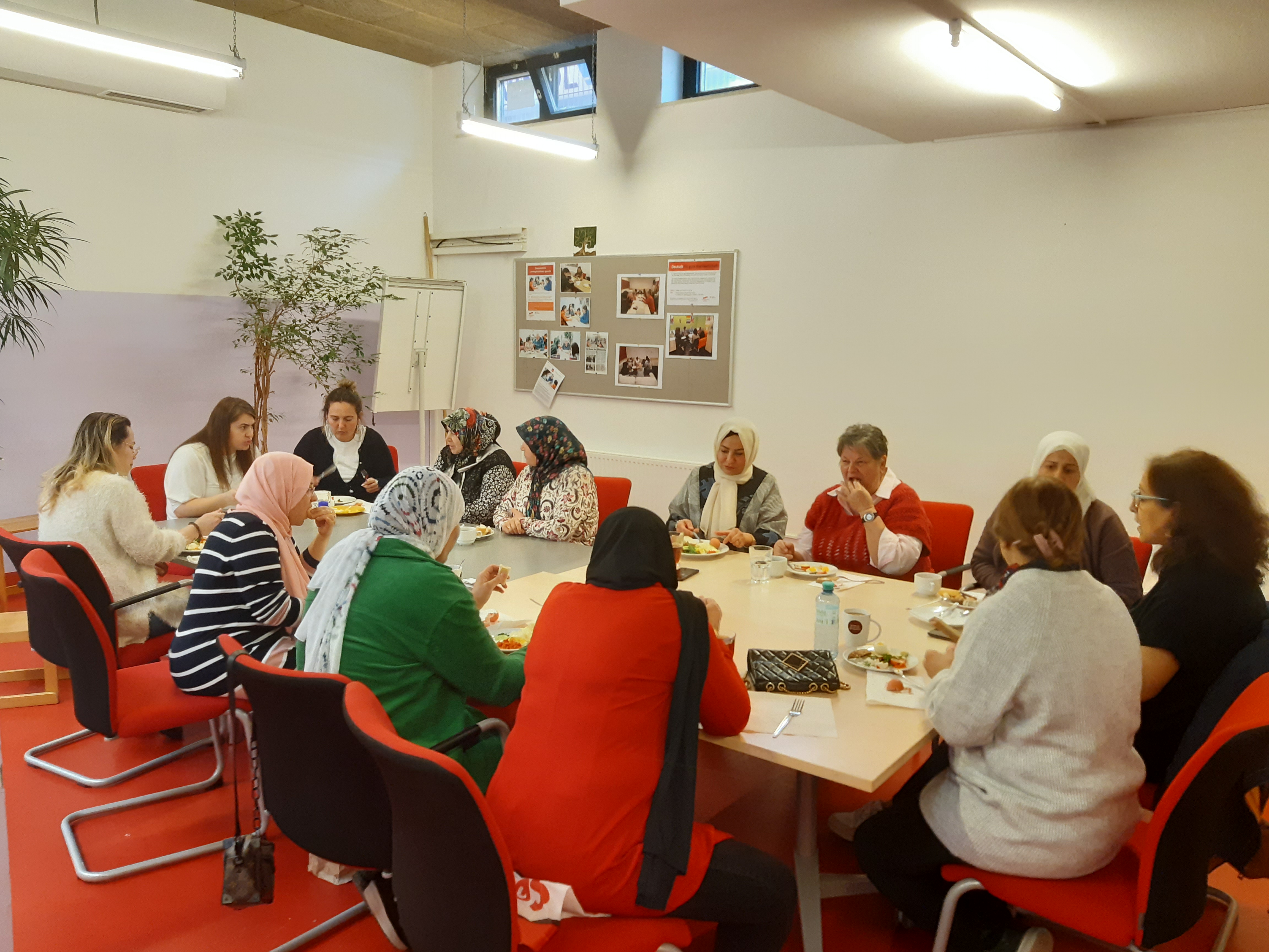 Im Rahmen des wöchentlichen Projektes Näh und Kreativwerkstatt und Frauen Café im Grätzl-Zentrum Wienerberg, findet regelmäßig einmal im Monat ein Frühstücksvormittag statt. Meistens kommt ein Besuch und während des Frühstücks finden zu bestimmten Themen Diskussionsrunden statt.