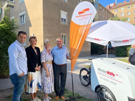 Die Bewohner*innen konnten sich nicht nur mit dem wohnpartner-Team, sondern auch mit den anwesenden Kooperationspartner*innen wie MieterHilfe, Ordnungsberater*innen und Grätzl-Polizei über aktuelle Themen im Hof unterhalten. Auch der Bezirksvorsteher Erich Hohenberger ließ es sich nicht nehmen und kam vorbei, um mit den Mieter*innen zu plaudern.