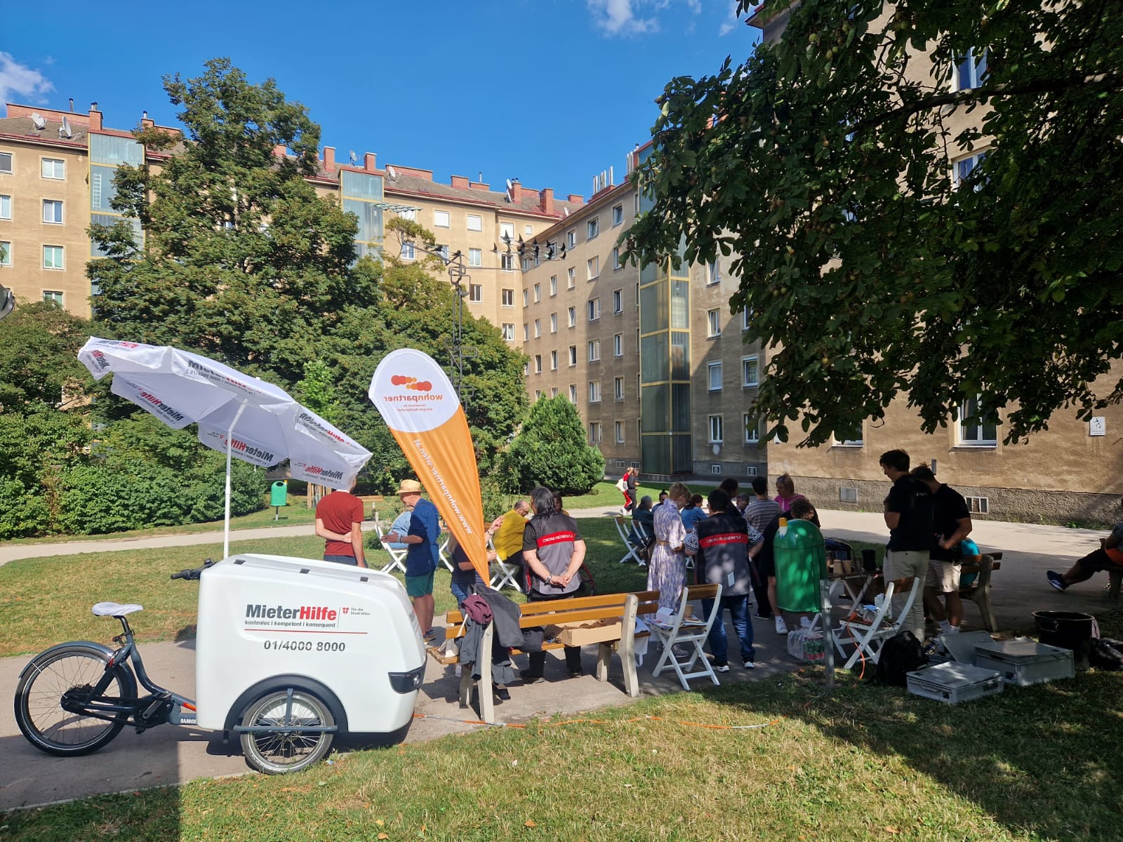 Am 31. August 2023 lud das Nachbarschaftsservice wohnpartner in Kooperation mit Wiener Wohnen die Bewohner*innen der Markhofgasse 12-18 zum Pop-Up-Café „Café Wien“ im Hof der Wohnhausanlage ein.