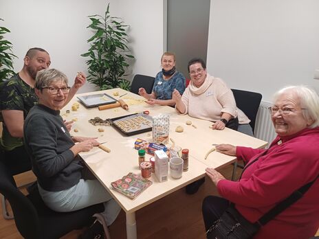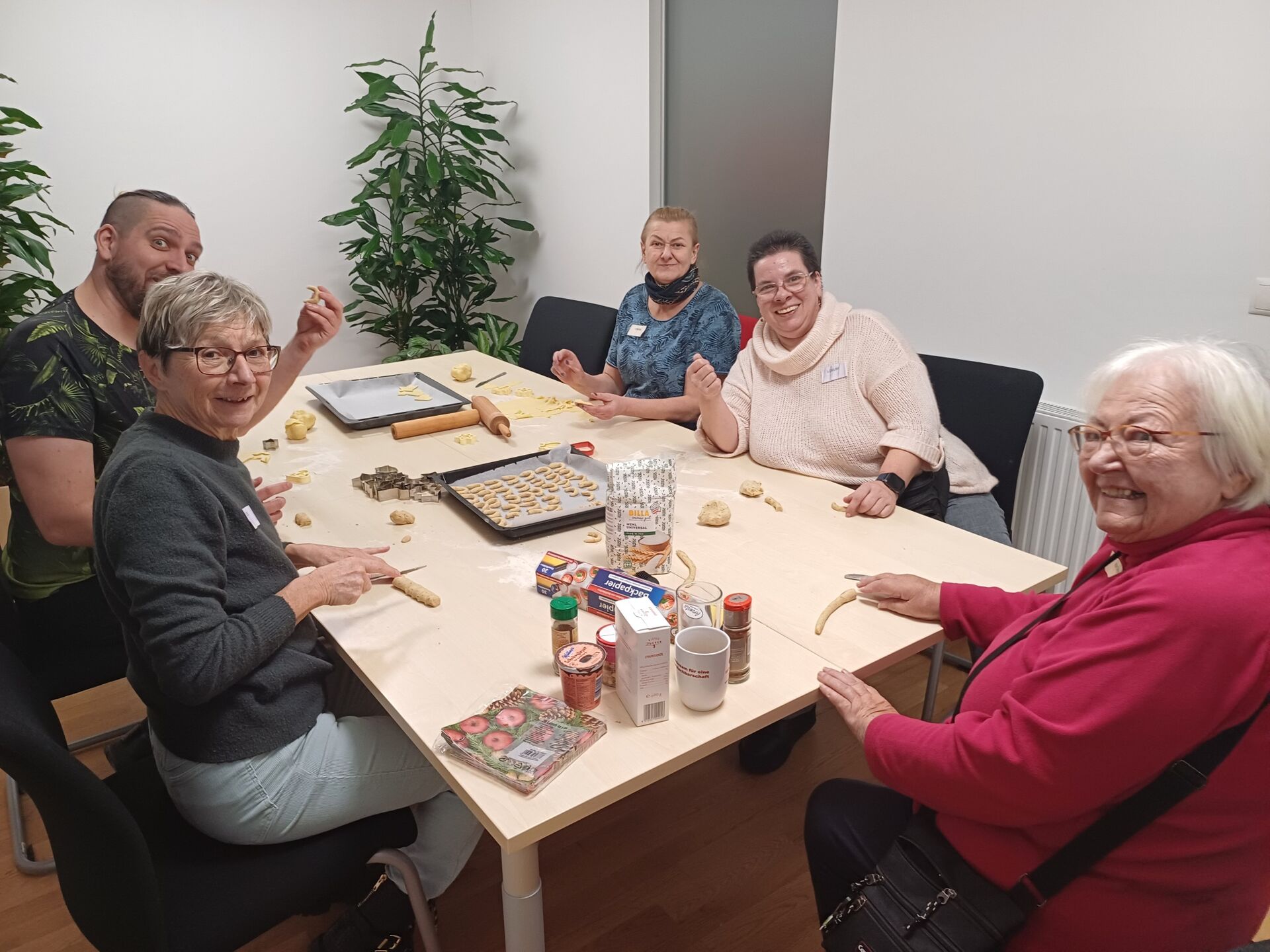 Die Backstation, bei der Keksteig ausgerollt, ausgestochen und gebacken wurde, bot den olfaktorischen Höhepunkt. Halt machten die Besucher*innen auch an der Station Tür zur Zukunft, ließen das Jahr 2024 Revue passieren und stellten zukunftsbezogene Reflexionen an.