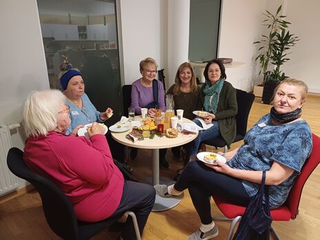 Punsch, Kekse, Knabberzeug, Getränke und ein üppiges Buffet sorgten für das leibliche Wohl. Die Mieter*innen wurden weder mit leerem Magen noch mit leeren Händen verabschiedet. Ein kleines Abschiedsgeschenk in Form einer verpackten wohnpartner-Tasse. gefüllt mit Schokolade, rundete den Abend perfekt ab.
