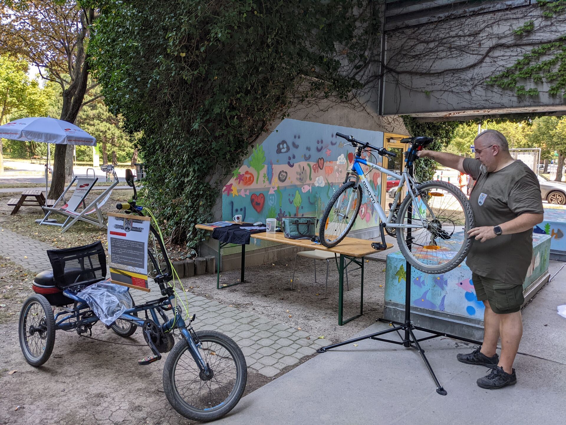 Im Zuge der Erlebniswelt Gemeindebau fand im schattigen Bassena-Garten erneut das Repair-Cafe statt. Diesmal wurden durch Ehrenamtliche nicht nur kleine Haushaltsgeräte repariert, sondern der Verein Pedalritter hat kaputte Fahrräder wieder fit gemacht. Ein erneuter Termin ist für Herbst geplant.