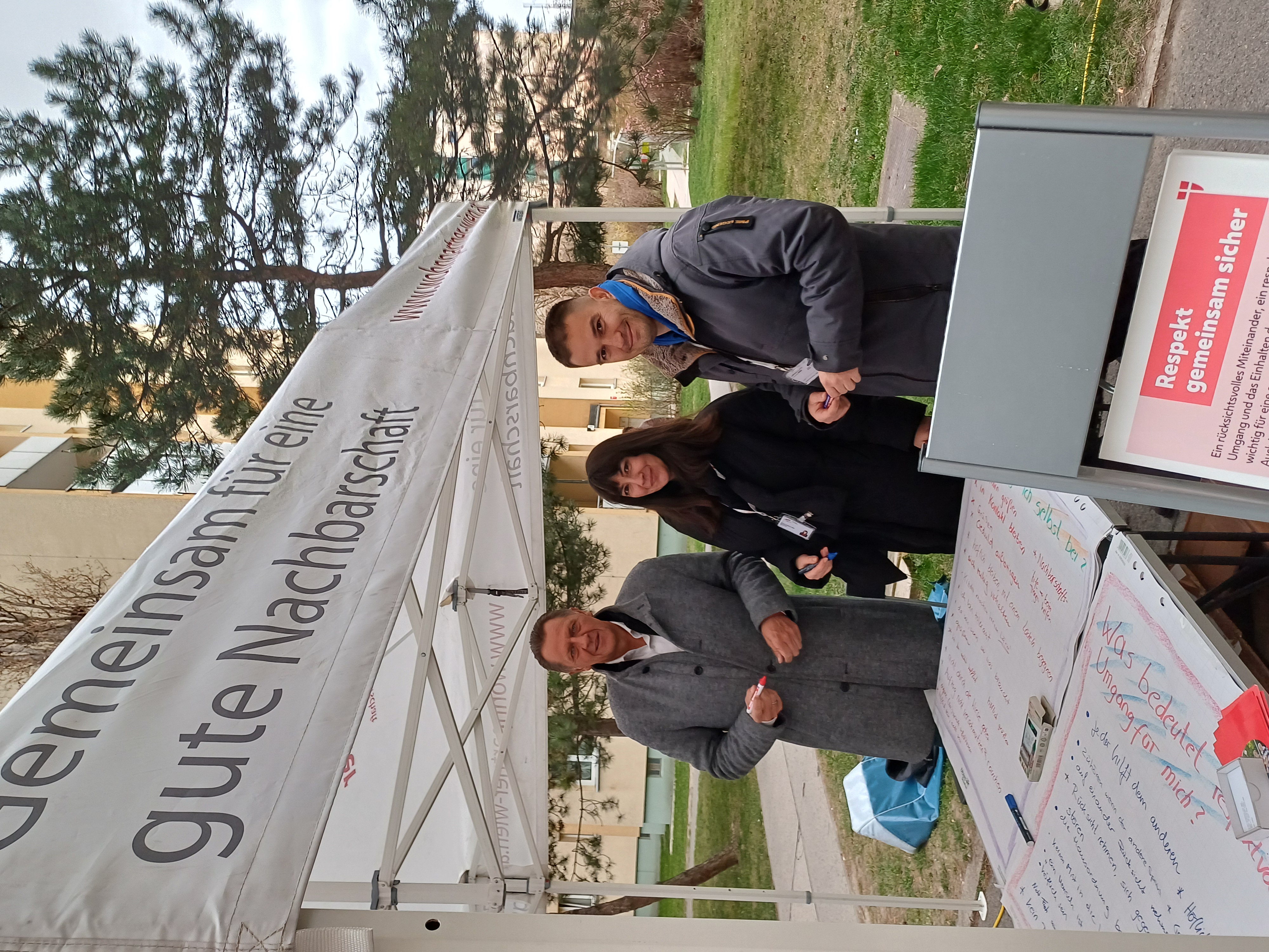 Neben wohnpartner waren noch Wiener Wohnen, die Ordnungsberater und die GESI vor Ort. Die Bedeutung der Veranstaltung wurde durch den Besuch von Bezirksvorsteher Thomas Steinhart verstärkt.