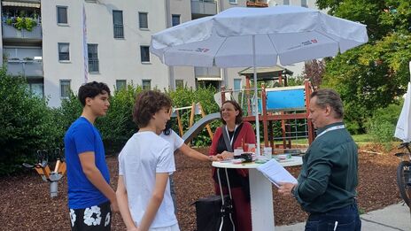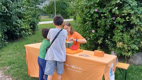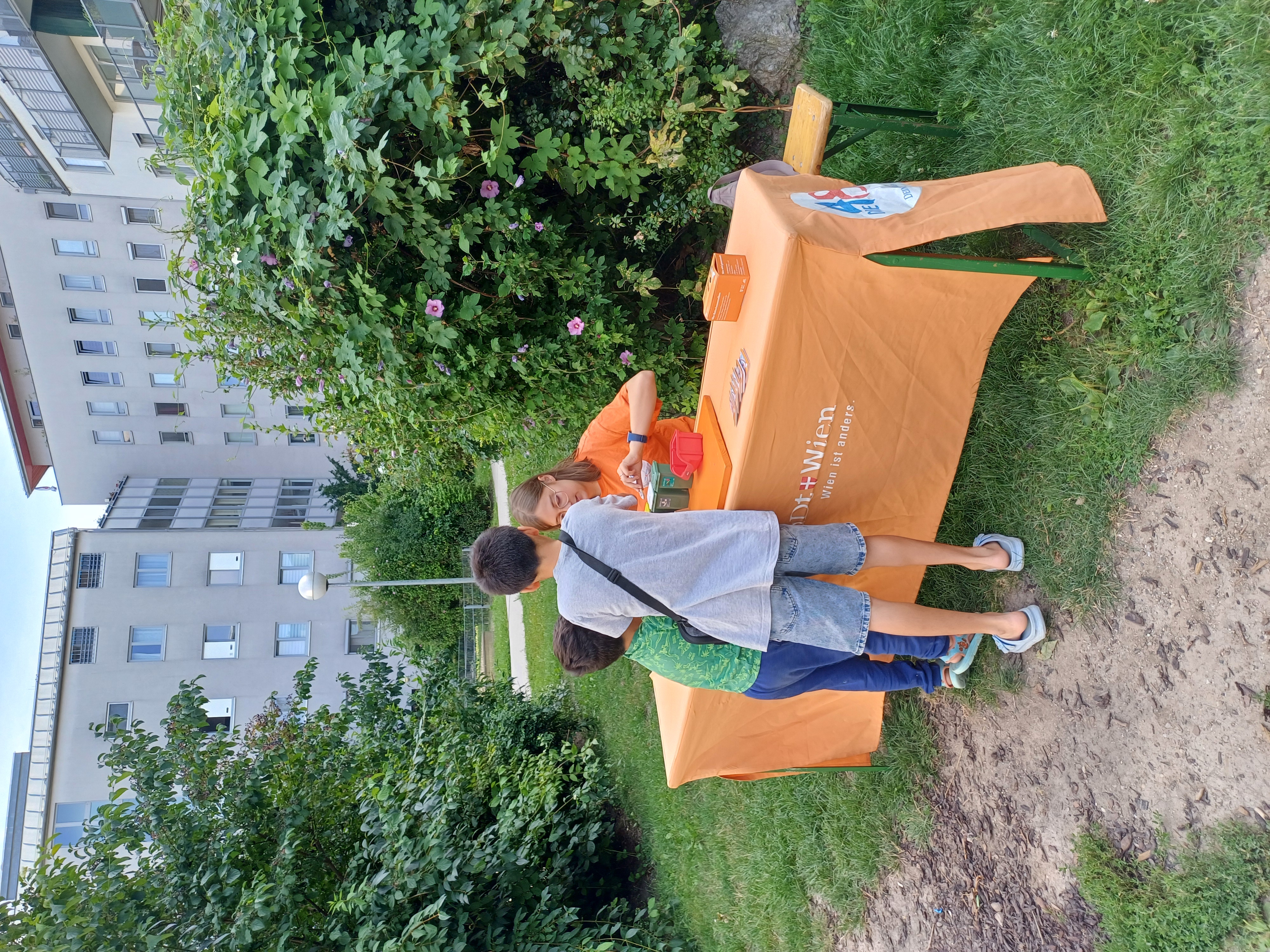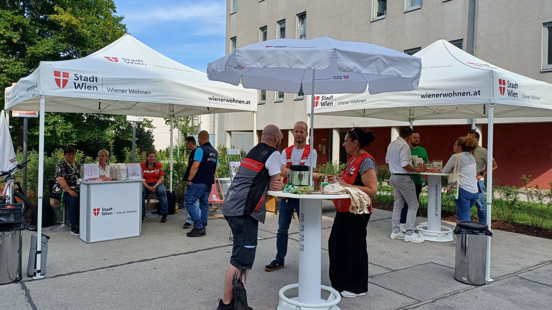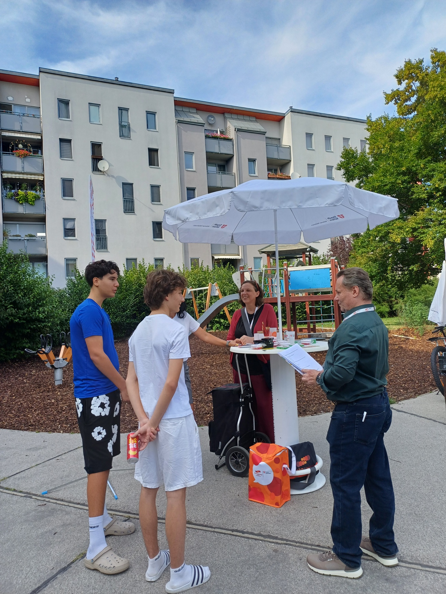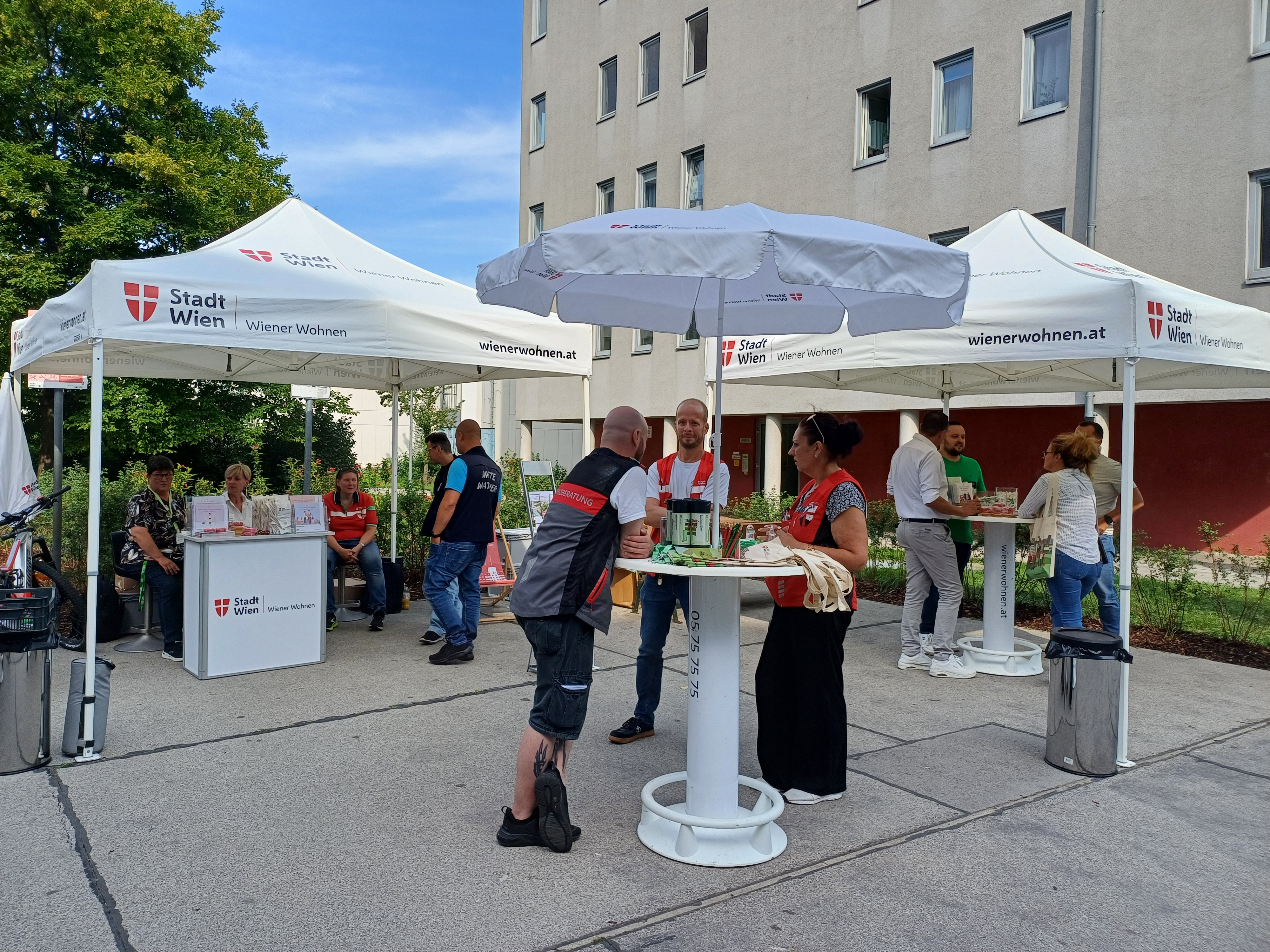 Beim Sauberkeitsfest in der Wohnhausanlage Am Hofgartl 3-7 nutzten die Bewohner*innen die Gelegenheit, um Informationen von den Institutionen einzuholen, die im Gemeindebau für Sauberkeit und ein gutes Zusammenleben sorgen. Mit wohnpartner vor Ort waren Wiener Wohnen, die Ordnungsberater*innen sowie die Haus- und Außenbetreuung sowie die MA 48. Auch Bezirksvorsteher Thomas Steinhart stand für Fragen zur Verfügung. Beim kniffligen Mülltrennspiel der Abfallberatung waren die jungen Besucher*innen mit Eifer dabei und freuten sich über kleine Belohnungen.
