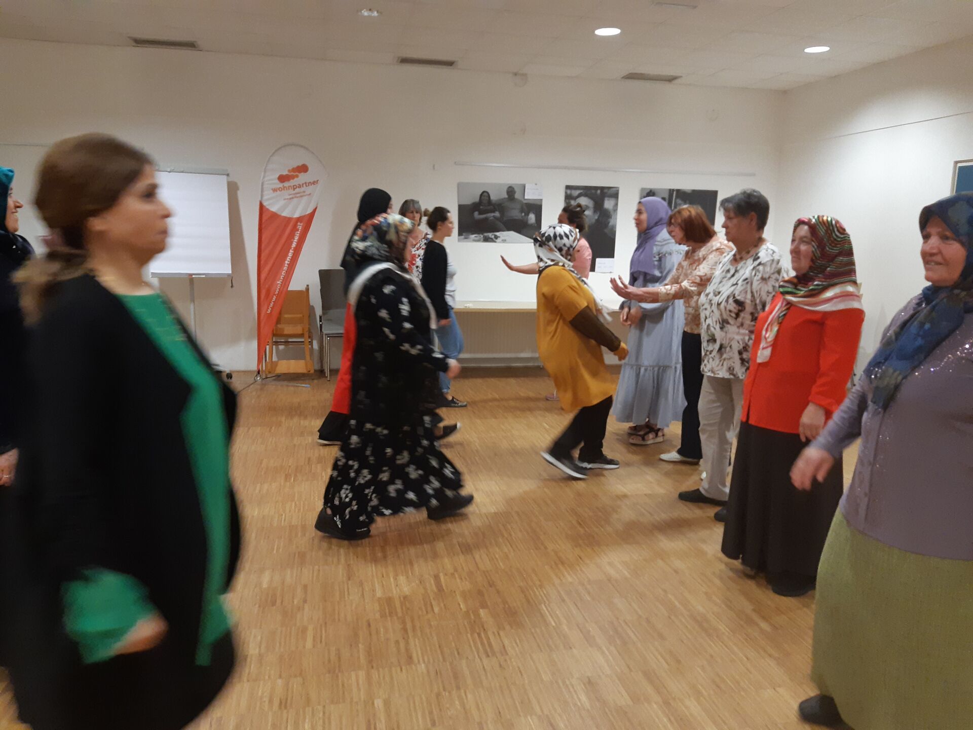 Etwa 15 Frauen, die auch regelmäßig zu unterschiedlichen Initiativen von wohnpartner kommen, nahmen an diesem Kurs teil. Dabei lernten sie, ihren Körper mit gezielten Bewegungen zu nutzen, um sich zu beweisen und zu verteidigen. Darüber hinaus war es das Ziel des Kurses, ihr Selbstvertrauen zu stärken und ihre Mobilität zu verbessern.