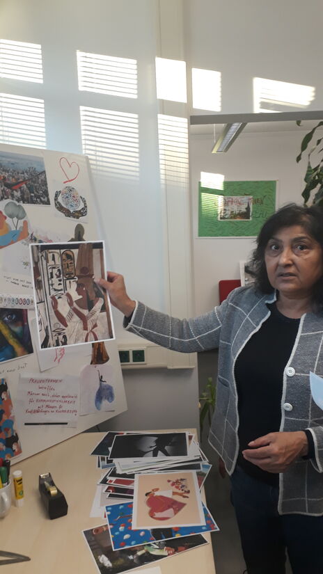 An einer von wohnpartner vorbereiteten Leinwand hatten die Frauen erneut die Möglichkeit, eine eigene Collage herzustellen. Dieses Angebot fand bei den anwesenden Frauen großen Zuspruch.