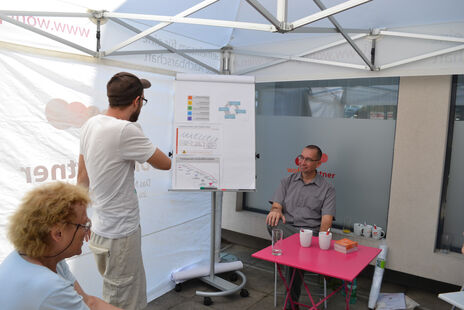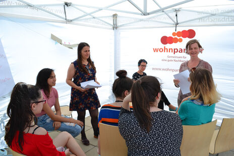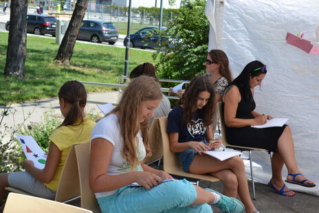 Am 18. Juni fand vor dem wohnpartner-Lokal Stinygasse der Tag der Mediation statt. Bei Sonnenschein erfuhren 40 Interessierte auf spielerische sowie fachliche Weise, was Mediation ist und wie diese Methode der Konfliktlösung funktioniert. Aufgeteilt in drei Workshops unter Zelten wurden die Schwerpunkte Kommunikation, Forumtheater und das 5-Phasen-Modell thematisiert. TeilnehmerInnen aus verschiedenen Kulturen und Altersklassen waren vertreten. SchülerInnen sowie SeniorInnen begegneten sich vorurteilsfrei, um die Methode Mediation genauer kennen zu lernen.