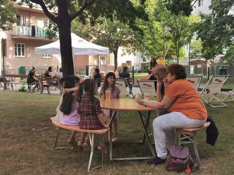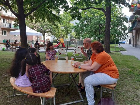 Das Hoffest am 3.6., das von 16-19 Uhr anberaumt war, stellte ein Highlight der Tage der offenen Tür dar. Über 50 Bewohner*innen, Anrainer*innen, der Bezirksvorsteher Peter Jagsch und andere Interessierte schauten vorbei, um sich das neue Grätzl-Zentrum anzusehen, die Angebote von wohnpartner kennenzulernen, sich zu vernetzen oder bei Kaffee und Kuchen ins Gespräch zu kommen. Eine Besucherin war gar - dem Aushang im Karl-Marx-Hof folgend - mit ihrer Tochter aus dem 19. Bezirk angereist. Die meisten blieben vom Anfang bis zum Ende, manche schauten einfach auf einen Sprung vorbei, aber alle sind sichtlich begeistert.