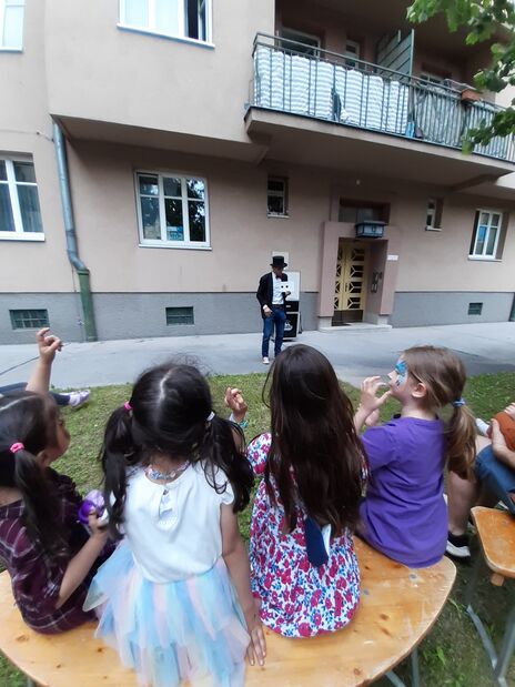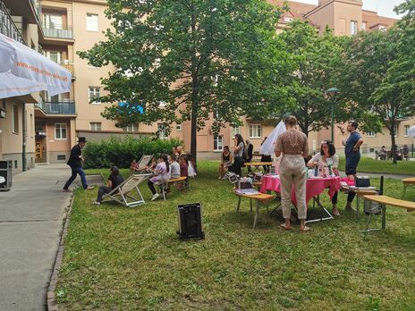 Die Tage der offenen Tür sind eine einmalige Möglichkeit für Bewohner*innen und Anrainer*innen ihr neues Grätzl-Zentrum kennenzulernen Das Hoffest stellt den Höhepunkt dieser Woche dar: