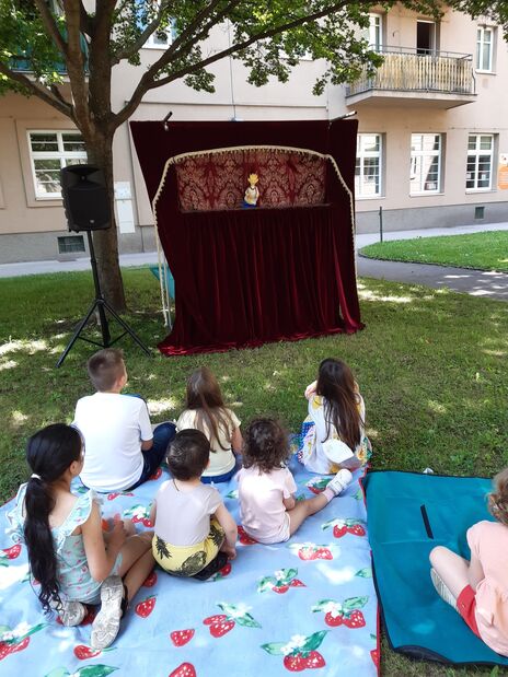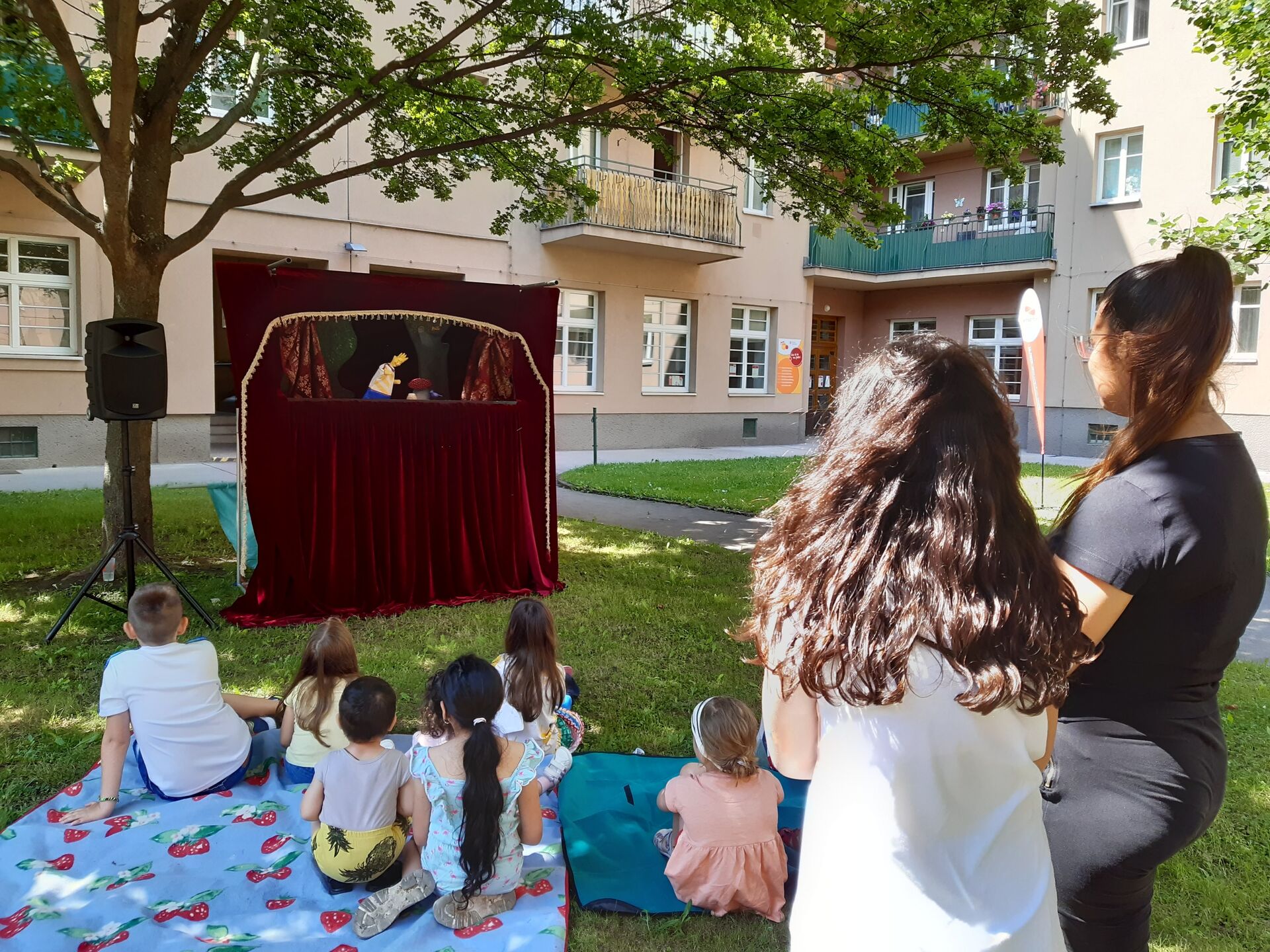 Am Samstag, dem 11. Juni 2022, lud das wohnpartner-Gebiet 17_18_19 in Kooperation mit WIENXTRA zu einem gemütlichen Nachmittag bei Kaffee und Kuchen in den Hof des neuen Grätzl-Zentrums. Knapp über 30 Bewohner*innen der Anlage Wattgasse 96-98 sowie Anrainer*innen und Interessent*innen folgten der Einladung und genossen den Nachmittag in der Sonne in entspannter Stimmung. Für gute Laune sorgte nicht zuletzt das Puppentheater Träumeland, das anlässlich des 50. Geburtstags des Ferienspiels den gebannt lauschenden und schließlich begeistert klatschenden Kindern sein neues Stück präsentierte.