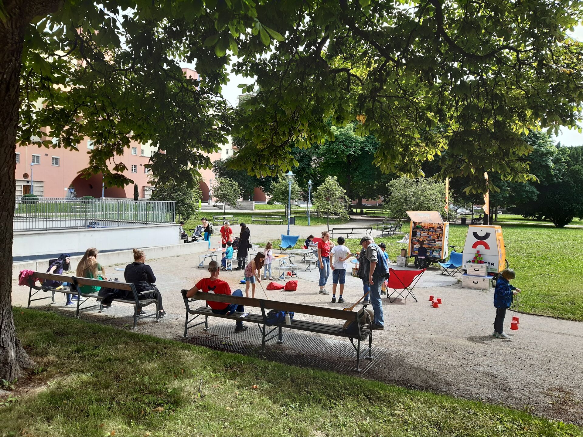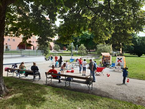WIENEXTRA tourt von Juni bis September mit seinen Lastenrädern im Rahmen von Hollis Grätzltour quer durch Wien und machte am Samstag, dem 25.6., auch am 12.-Februar-Platz Station. Von 14-17 Uhr hatten Kinder, Jugendliche, Eltern und Großeltern die Möglichkeit die beliebtesten Brett- und Gesellschaftsspiele auszuprobieren, neue Lieblingsspiele kennenzulernen und sich über die Angebote vom Ferienspiel oder wohnpartner zu informieren. Ein besonderer Höhepunkt für die Kleinen war „Hollis Geburtstagsabenteuer“, das neue Stück der Puppenbühne Träumeland.
