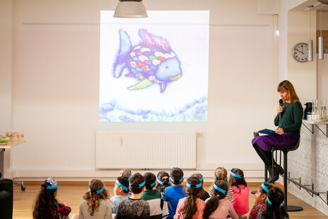 Am Tag des Buches feierte wohnpartner in Simmering gemeinsam mit dem städtischen Kindergarten Hasenleiten die Welt der Bücher. Frei nach dem Motto “Was mehr wird, wenn wir teilen” fand eine Lesung der Geschichte vom Regenbogenfisch statt. Danach schwammen die Kinder als Fischschwarm verkleidet durchs Lokal, machten sich gegenseitig erfundene Geschenke, tauschten Fischschuppen aus und sangen ein für diesen Anlass vorbereitetes Lied. Das größte und das kleinste Buch des offenen Bücherregals im wohnpartner-Lokal wurden ebenfalls bestaunt.