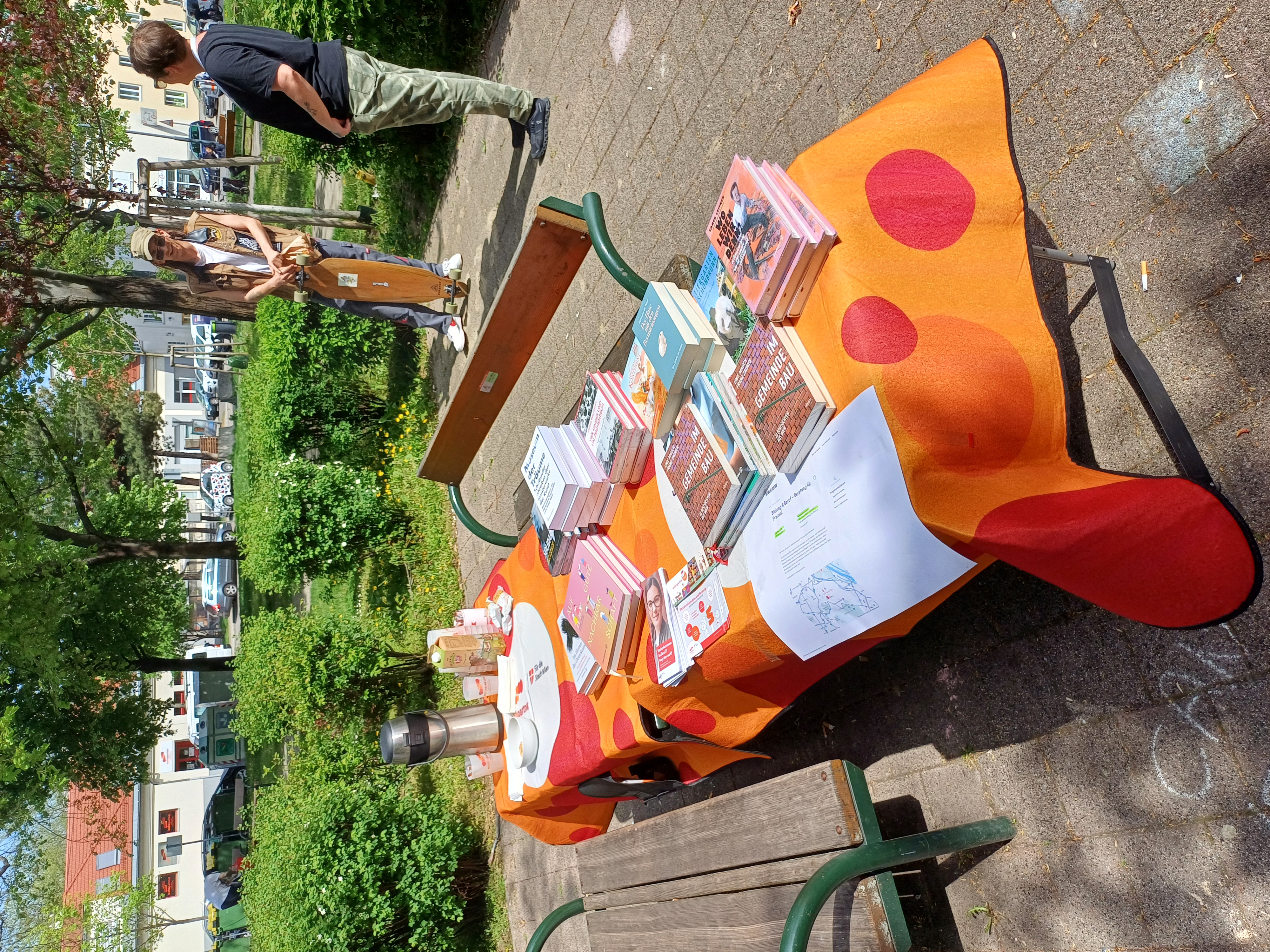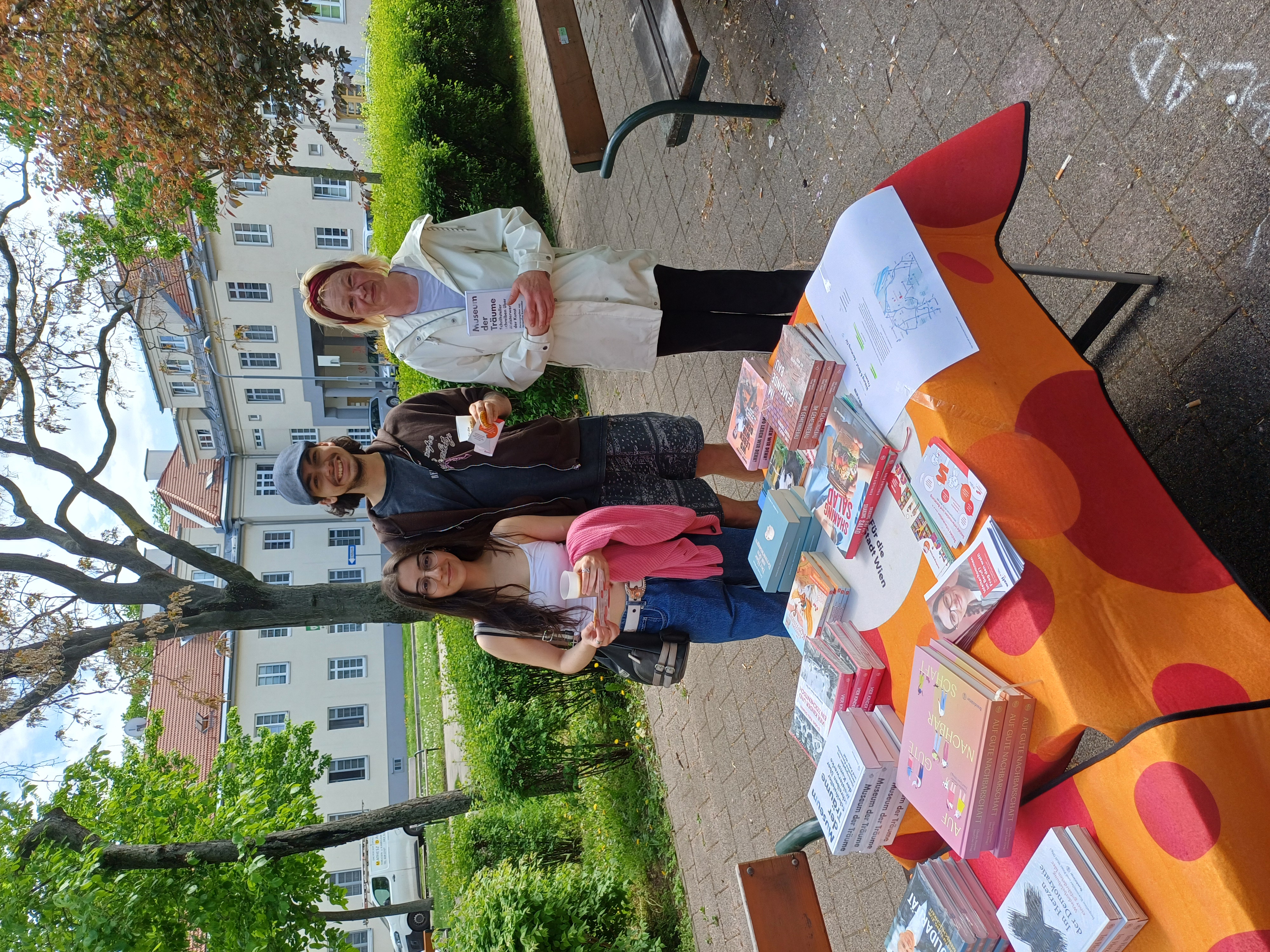 Bei frühlingshaftem Wetter war Literatur ebenso Gesprächsstoff wie aktuelle Themen. Passend zum Anlass teilten die Menschen ihre eigenen Geschichten, Alltagserlebnisse, Sorgen und Gemeindebauthemen.