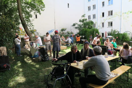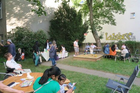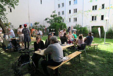 wohnpartner organisiert zusammen mit den Mietervertreter*innen ein Fest im Innenhof, bei dem sich Nachbar*innen treffen und austauschen können.