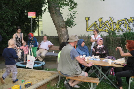 Die Bewohner*innen haben sich bei dieser Veranstaltung sehr gut vernetzt und planen nun bereits weitere Zusammenkünfte im Rahmen von Hofcafés – somit wurde das Ziel einer guten und lebendigen Nachbarschaft gemeinsam erreicht.