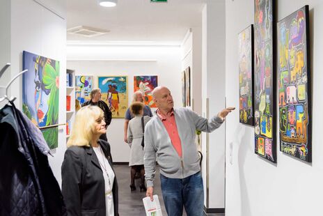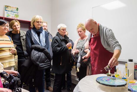 Am 7. November war es wieder soweit - das wohnpartner-Team 1_2_8_9_20 öffnete Tür und Tor für zahlreiche Kunstinteressierte BesucherInnen: Im Rahmen des Projekts "Verborgene Talente" präsentierte Heinz Seiler in gemütlicher Atmosphäre und vor vielen BesucherInnen, FreundInnen und Bekannten seine Werke. Die Begeisterung unter den BesucherInnen war dabei groß - auch seine Vorführung der Pouring Technik, einer faszinierenden Fluid Painting Mal- und Giesstechnik fand viele Fans. Für musikalische Stimmung sorgte der Gitarrist Pedro Hernandez. Bei Buffet und erfrischenden Getränken wurden zudem viele interessante Gespräche geführt. Das schöne Ambiente lud auch andere BesucherInnen ein, ihre Werke bei wohnpartner auszustellen.