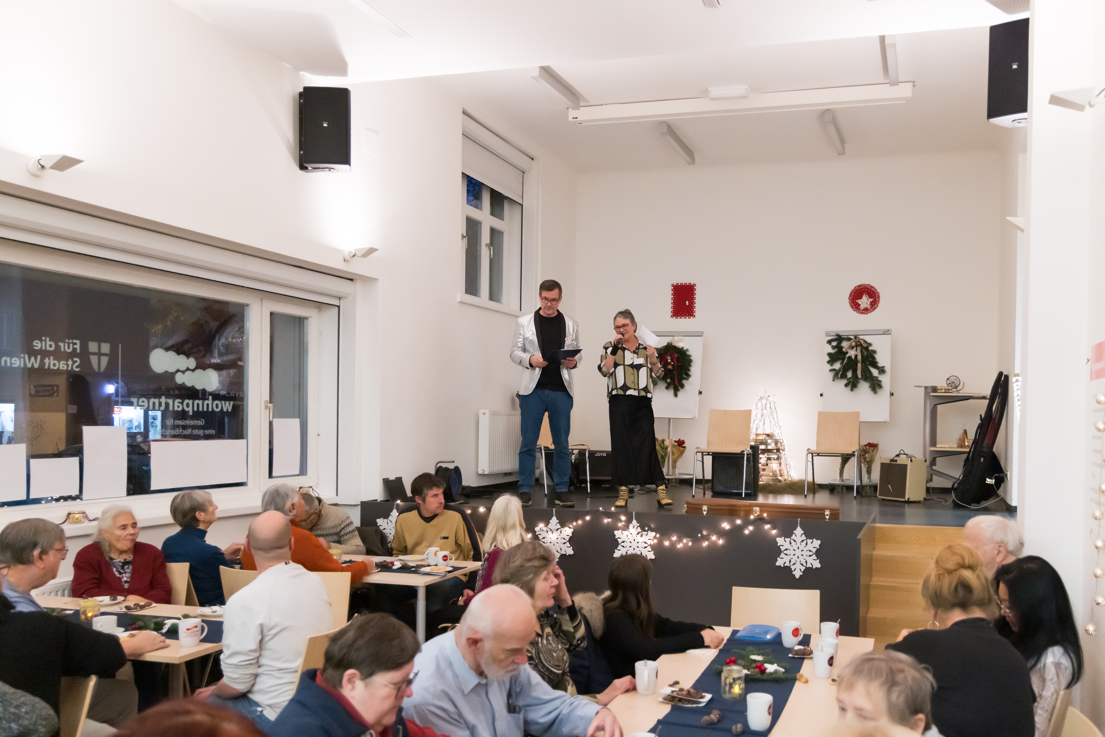 Nach einer längeren Pause veranstalteten die Teams 1 und 2 der wohnpartner-Region Ost wieder ein Jahresabschlussfest für Mieter*innen und Kooperationspartner*innen in den Räumlichkeiten des wohnpartner-Lokals Engerthstraße 230.