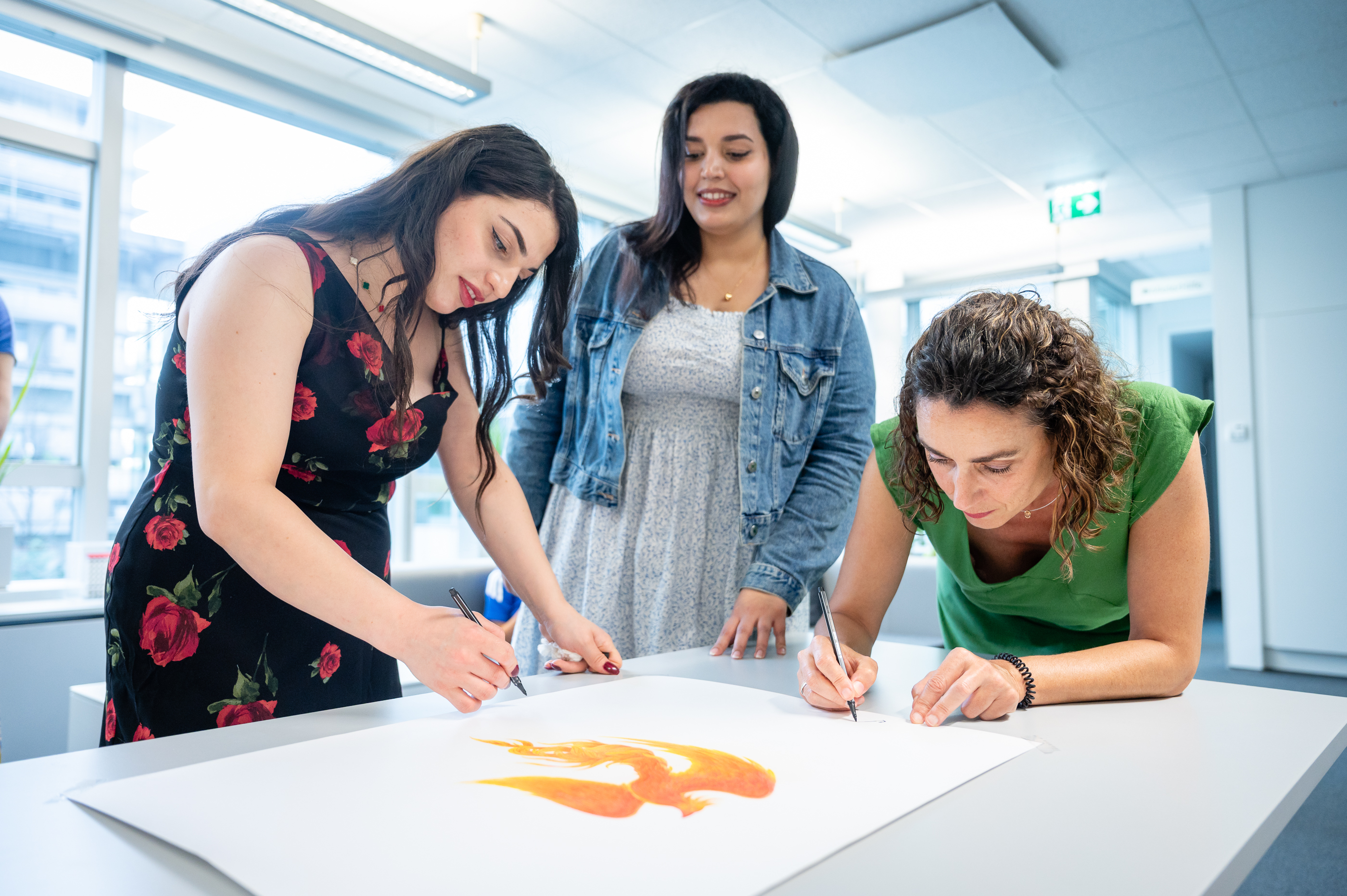 Besonders schön war die familiäre Atmosphäre, unterstützt durch die Anwesenheit von Kindern und anderen Begleitpersonen. Nach der Zeremonie gab es einen Sektempfang, bei dem die Erfolge der Absolvent*innen gebührend gefeiert wurden. Ein Höhepunkt war die Gesangseinlage einer Teilnehmerin, gefolgt von einer kreativen gemeinsamen Malaktion, die den Teamgeist symbolisierte.