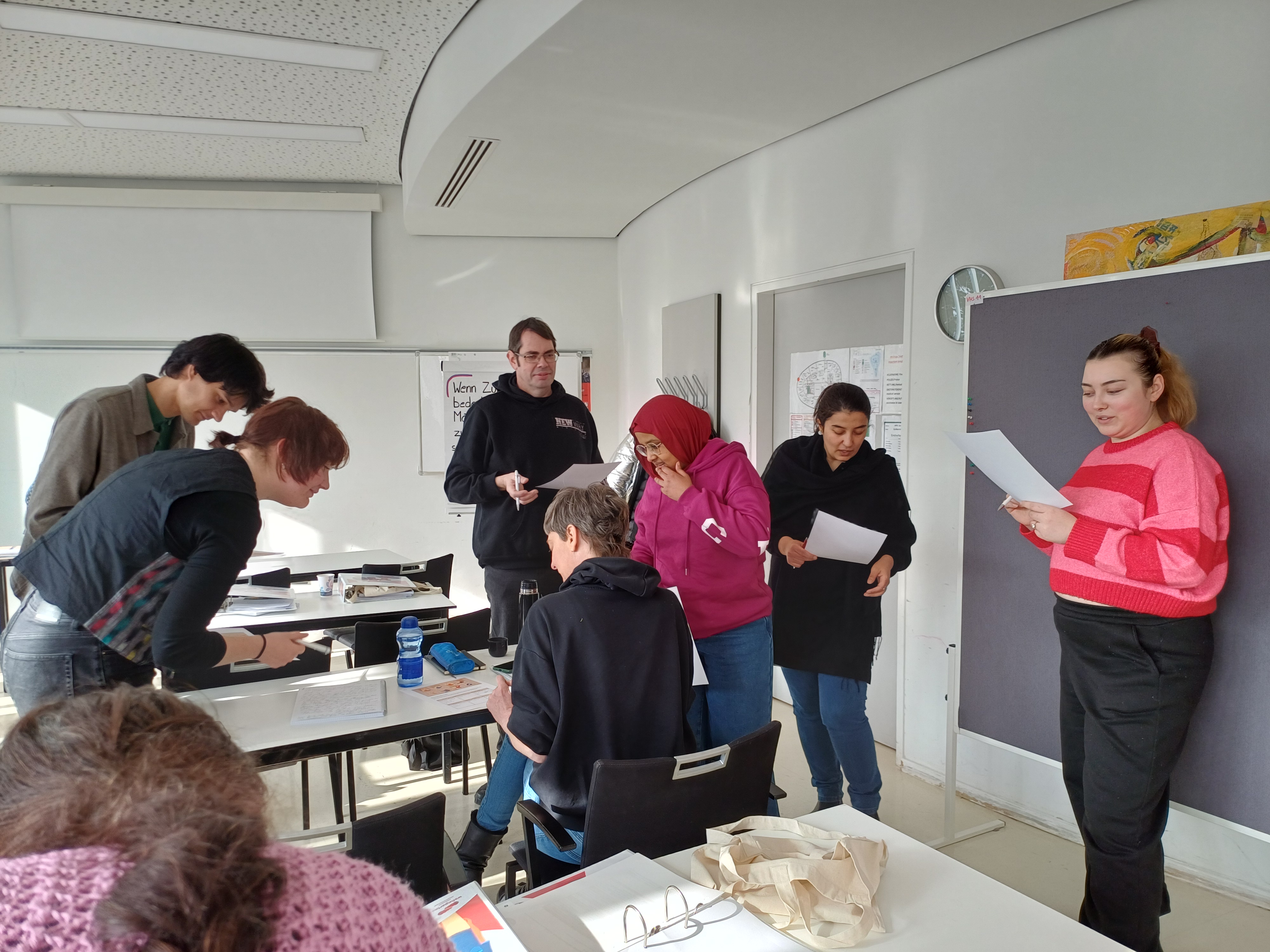 Die Gruppe ist sehr divers – im Hinblick auf Alter, Herkunft, Erstsprache, Lebens- und Berufserfahrung. Ebenso divers ist die Motivation der Teilnehmer*innen für den Lehrgang – von Weiterbildung über Integration bis hin zu einem angestrebten Wechsel in den sozialen Bereich.