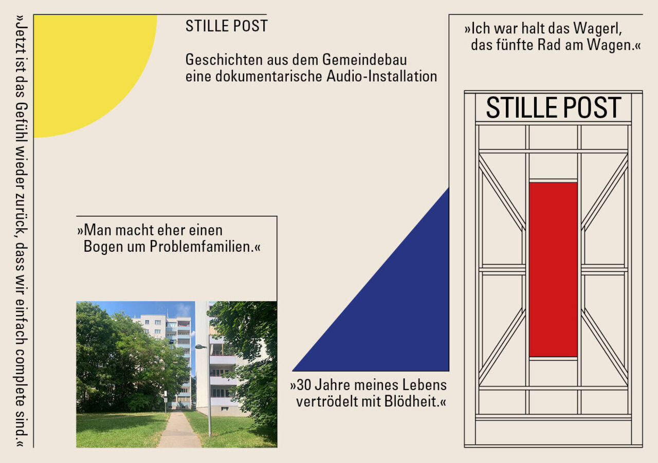 STILLE POST schafft einen Dialog zwischen zwei Gemeindebauhöfen und Bezirken. Neben den hörbaren Geschichten verbindet eine Direktleitung die beiden Orte und ermöglicht spontane Begegnungen am Telefon.