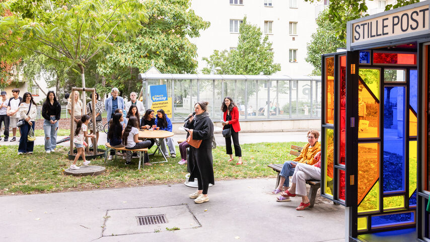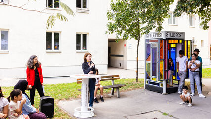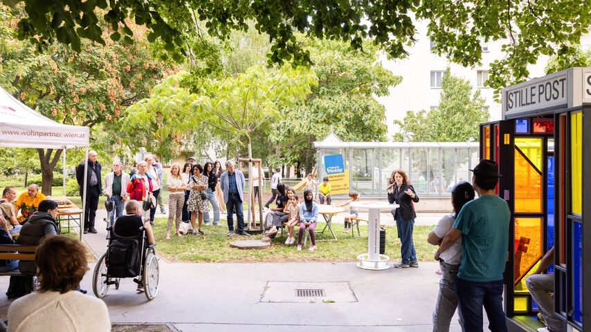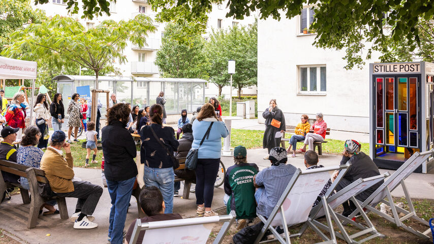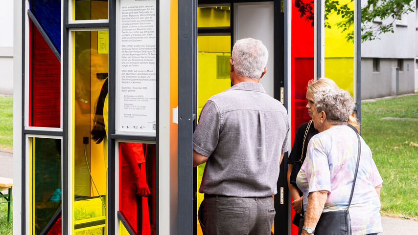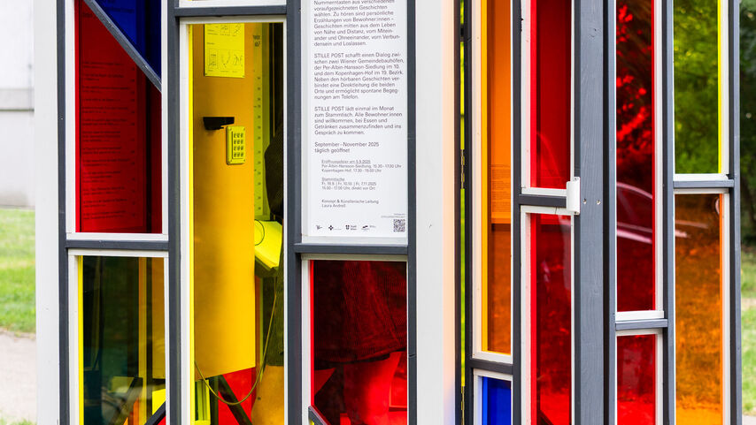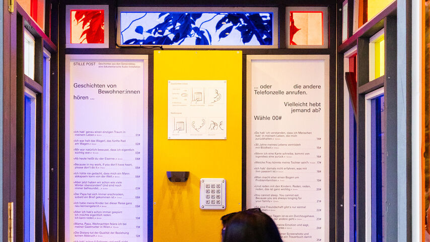 STILLE POST ist ein akustisches Archiv zwischenmenschlicher Beziehungen. Ab September stehen für drei Monate ganz besondere Telefonzellen in zwei Wiener Gemeindebauhöfen – in der Per-Albin-Hansson-Siedlung im 10. und im Kopenhagen-Hof im 19. Bezirk. Wer eintritt und den Hörer abnimmt, kann über die Nummerntasten aus verschiedenen voraufgezeichneten Geschichten wählen. Zu hören sind persönliche Erzählungen von Bewohner:innen – Geschichten mitten aus dem Leben von Nähe und Distanz, vom Miteinander und Ohneeinander, vom Verbundensein und Loslassen.